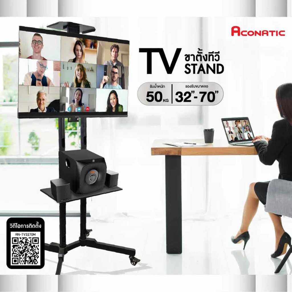 Aconatic ขาแขวนทีวีตั้งพื้นมีล้อเลื่อน 32-70 สีดำ รุ่น AN-T3270M โดย สยามทีวี by Siam T.V.