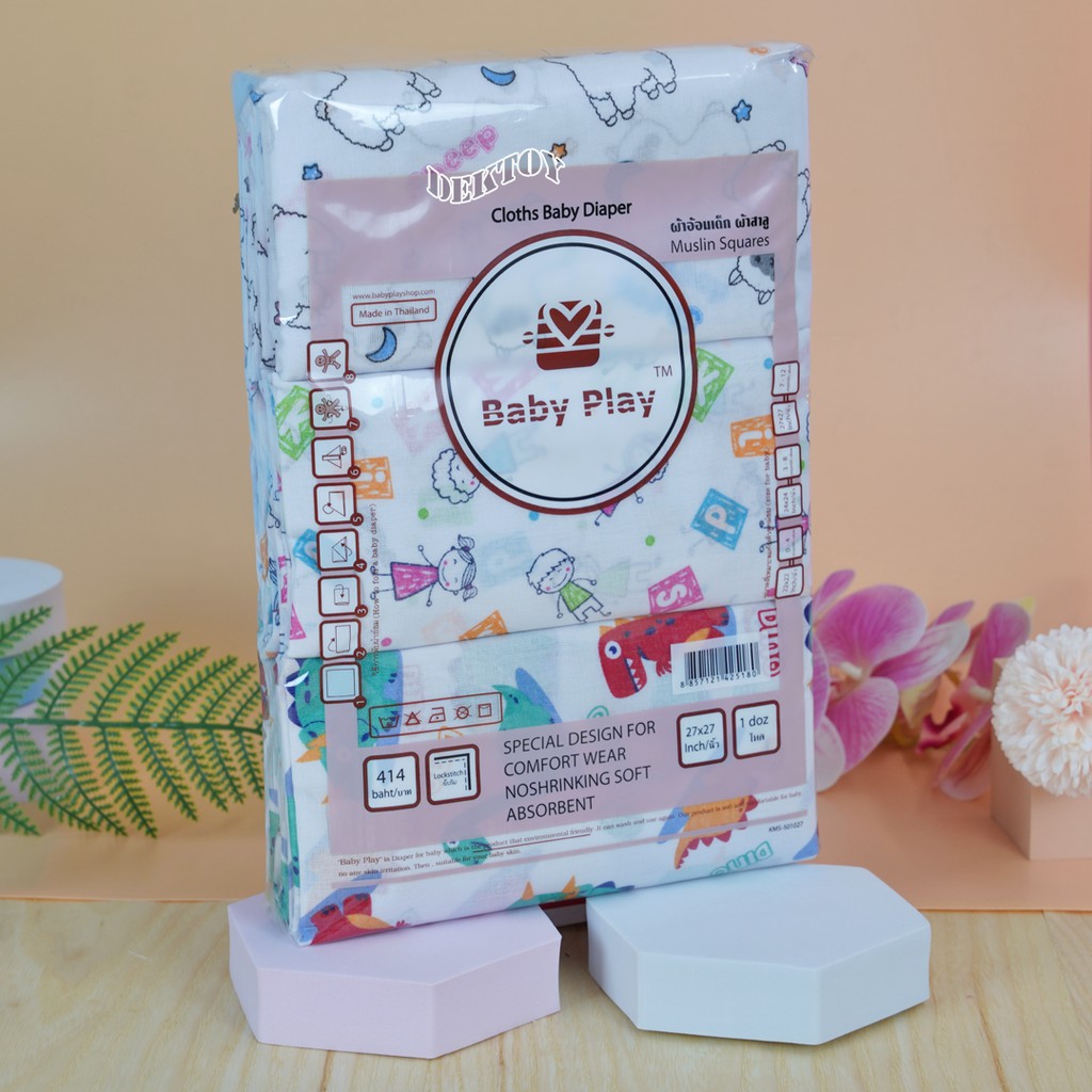 Babyplay ผ้าอ้อมสาลู2ชั้นเกรดB 27นิ้ว 12 ผืน