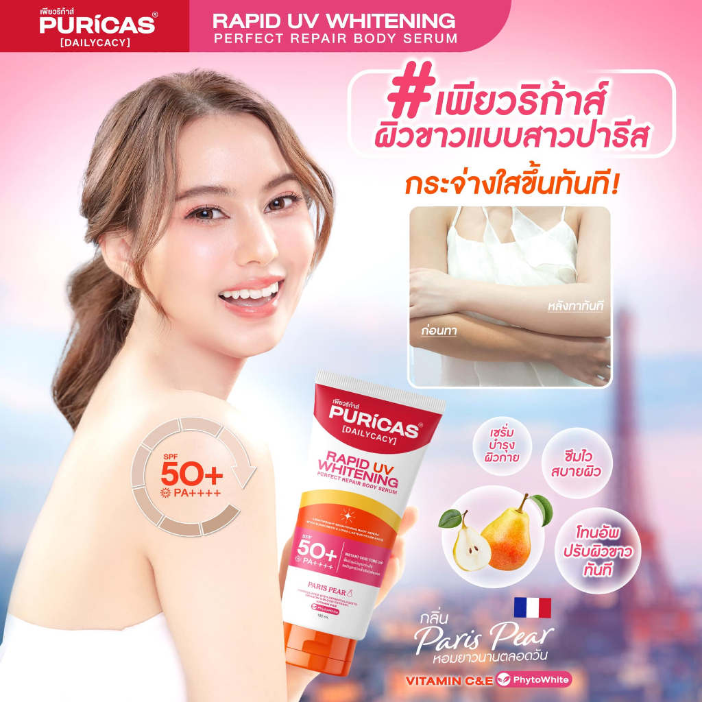 [ขนาดทดลอง] Puricas rapid uv whitening & perfect repair body serum ขนาดทดลอง 30ml. เซรั่มกันแดดผิวกาย