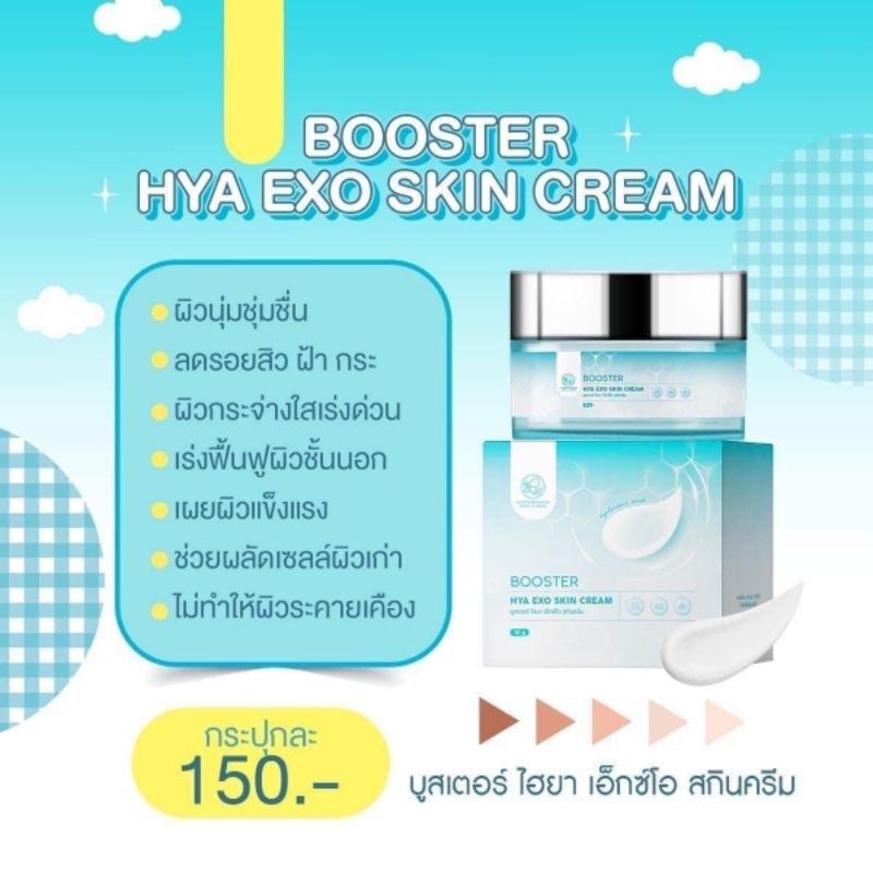 **กระปุกฟ้าไม่มีกล่อง** BOOSTER HYA EXO SKIB CREAM บูสเตอร์ ไฮยาเอ็กซ์โอสกินครีม BY พรทิน่าครีมผิวหน้ากระจ่างใสออร่า10g.