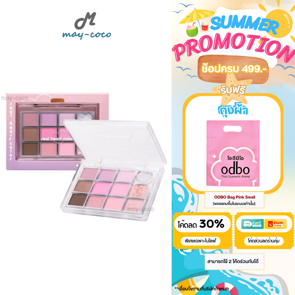 ถูก/แท้/มีไลฟ์ พาเลทท์ ODBO Real Heart Color Eye Palette พาเลท อายแชโดว์ เนื้อแมท ชิมเมอร์ ทาตา แต่งตา ตาวิ้ง สีชัด