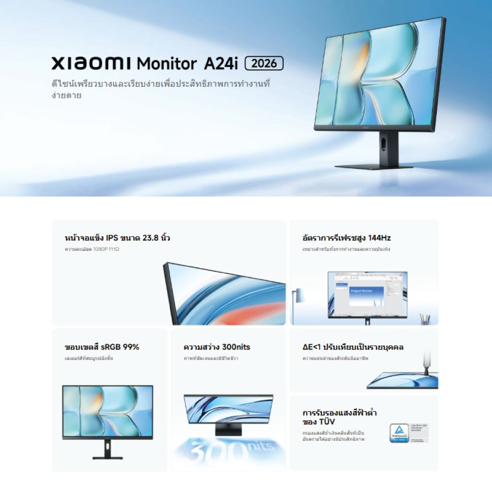 (NEW) Xiaomi Monitor A24i 2026 | หน้าจอแข็ง IPS ขนาด 23.8 นิ้ว | ความละเอียด 1080P FHD | อัตราการรีเฟรชสูง 144Hz