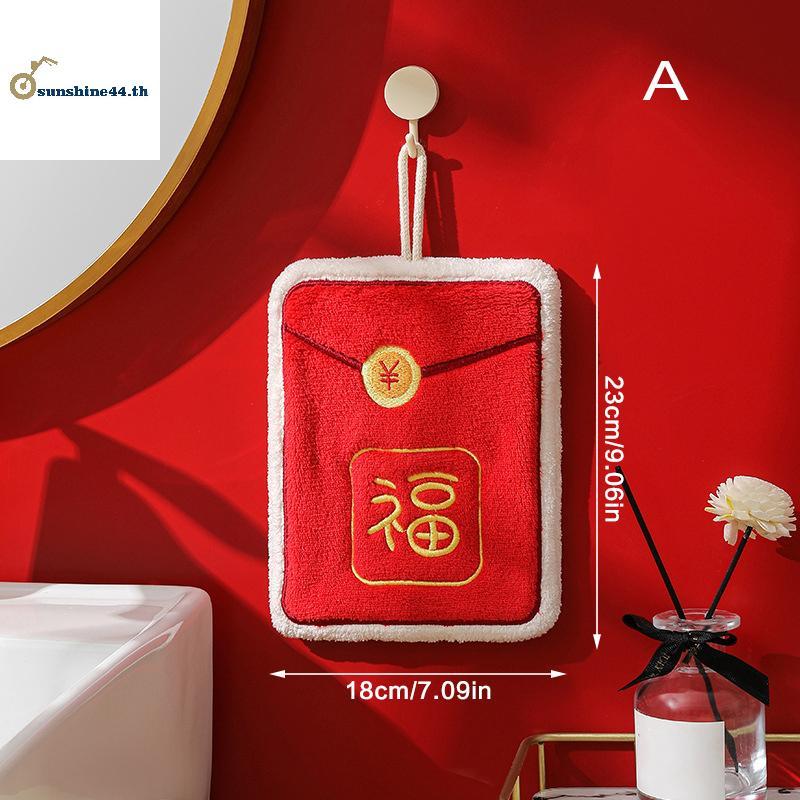 FOURSUN ตรุษจีนซองจดหมายสีแดงรูปร่างผ้าเช็ดมือพร้อมห่วงผ้าขนหนูปะการังดูดซับนุ่ม Qui แห้งสําหรับห้องครัวห้องน้ํา TH