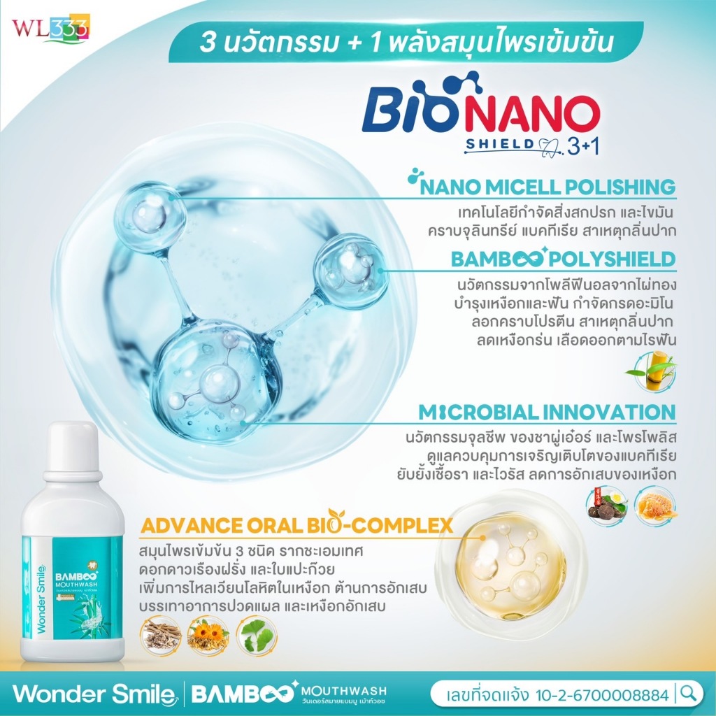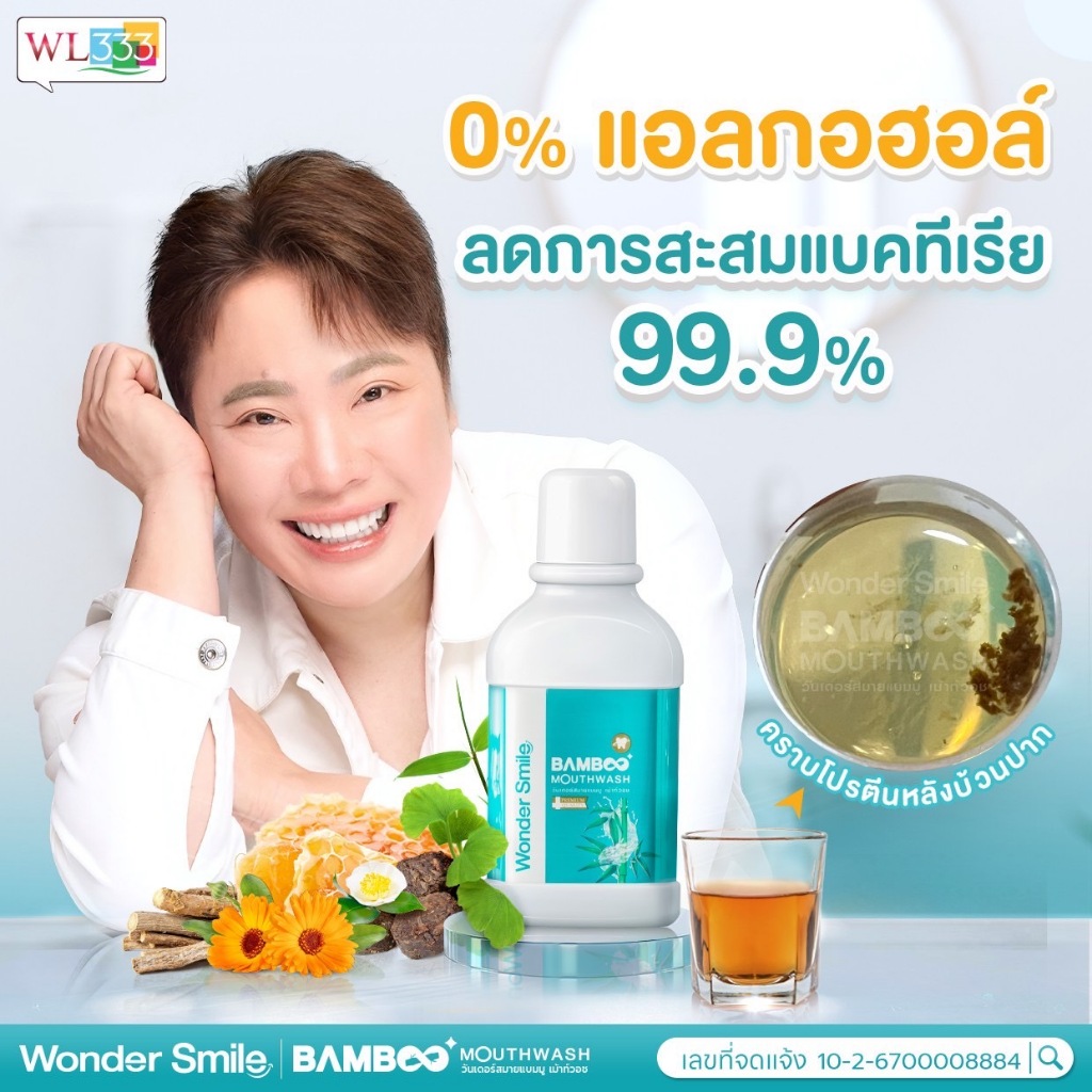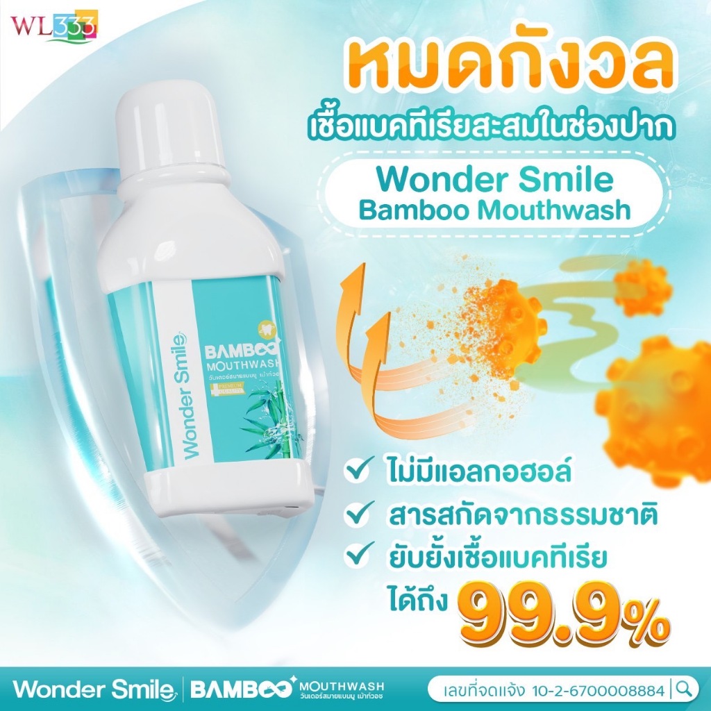 น้ำยาบ้วนปากแบมบู Wonder Smile Bamboo Mouthwash ช่วยจัดการกลิ่นปากหลังมื้ออาหารแบบครบจบ สะอาด มั่นใจ