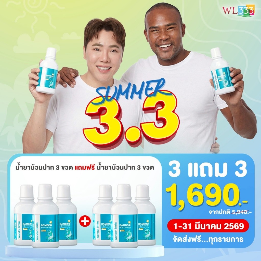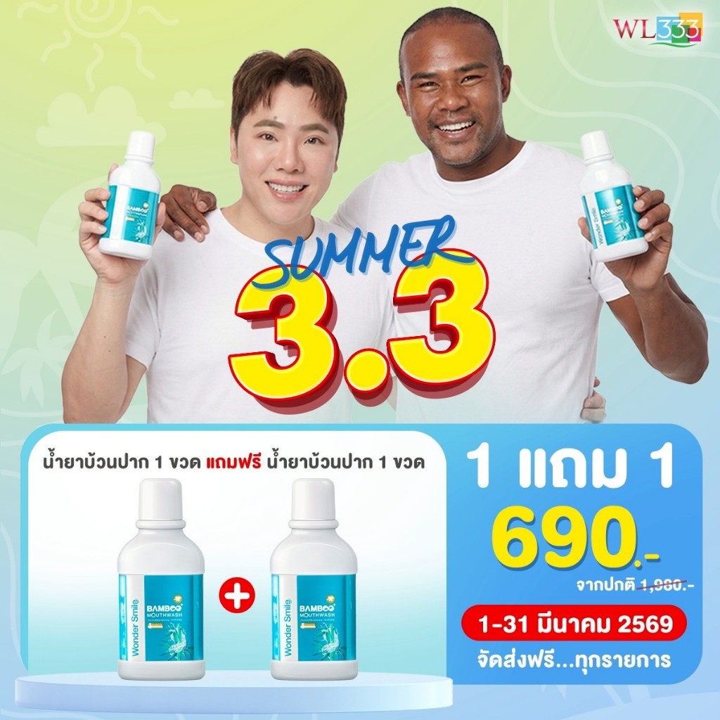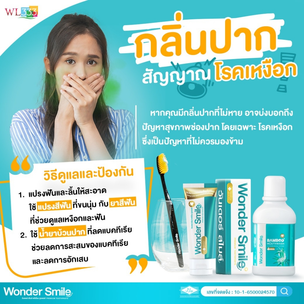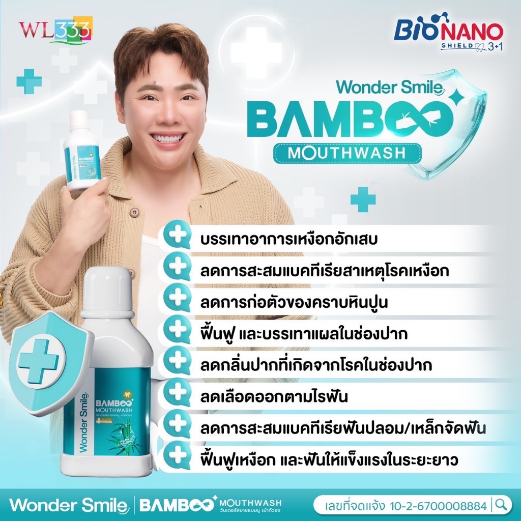 น้ำยาบ้วนปากแบมบู Wonder Smile Bamboo Mouthwash ช่วยจัดการกลิ่นปากหลังมื้ออาหารแบบครบจบ สะอาด มั่นใจ