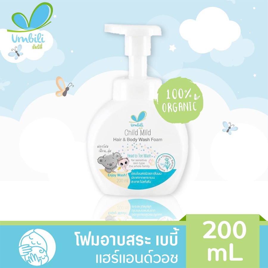 Umbili อัมบิลี่ โฟมอาบน้ำ สำหรับเด็ก Baby Hair and Body Wash 200ml. มูสโฟมเนียนนุ่ม ไม่ระคายเคืองต่อผิวและดวงตา