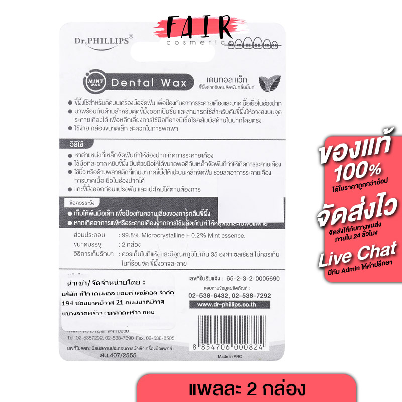 ขี้ผึ้ง สำหรับคนจัดฟัน Dr.Phillips Dental Wax เดนทอล แว็ก [2 กล่อง]