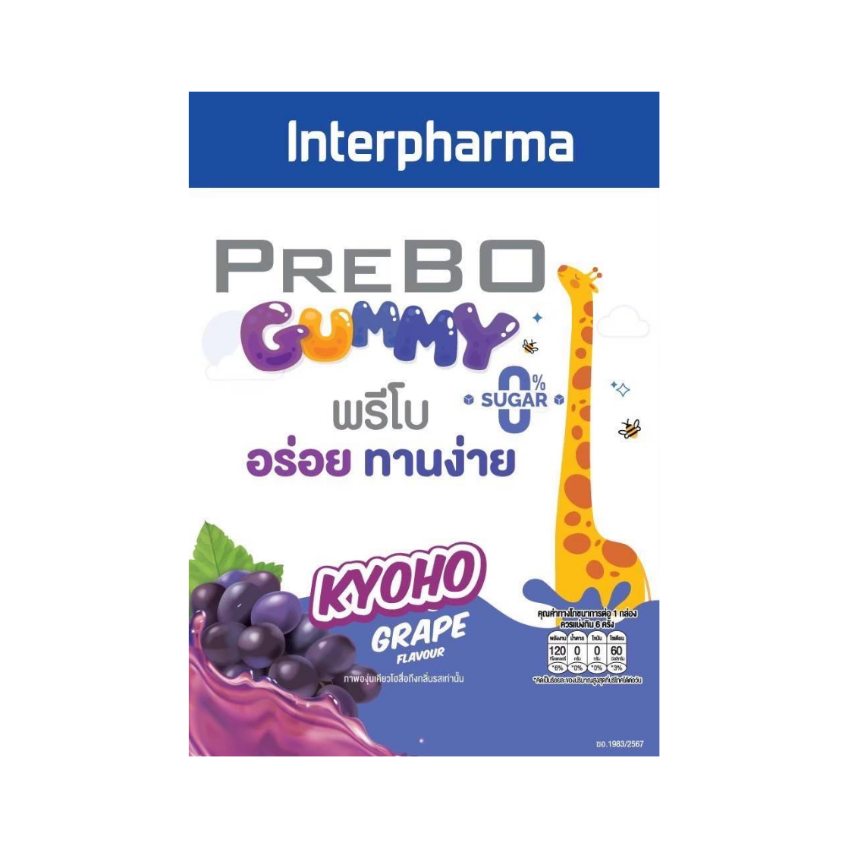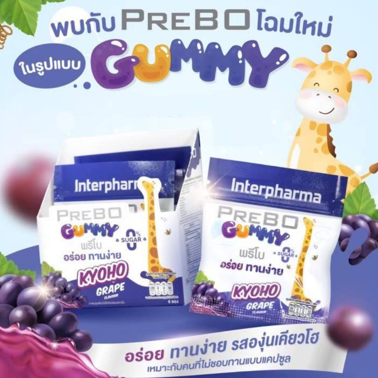 [ยกกล่อง 6 ซอง] Interpharma Prebo Gummy Kyoho Grape พรีโบ กัมมี่ องุ่นเคียวโฮ โปรตีน CBP ความสูง