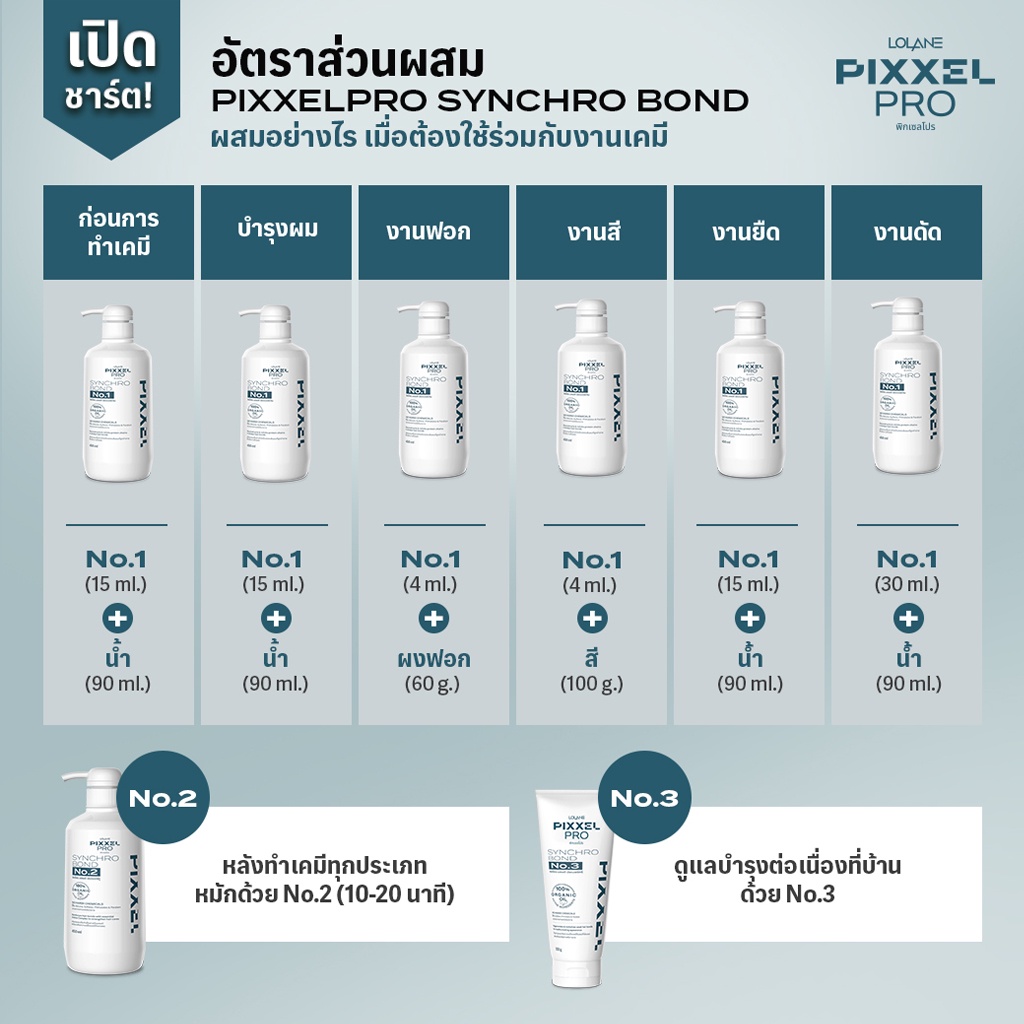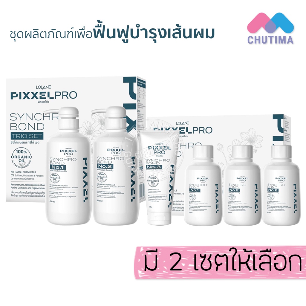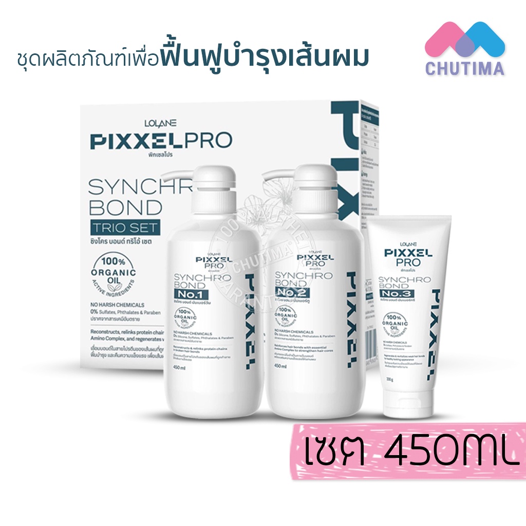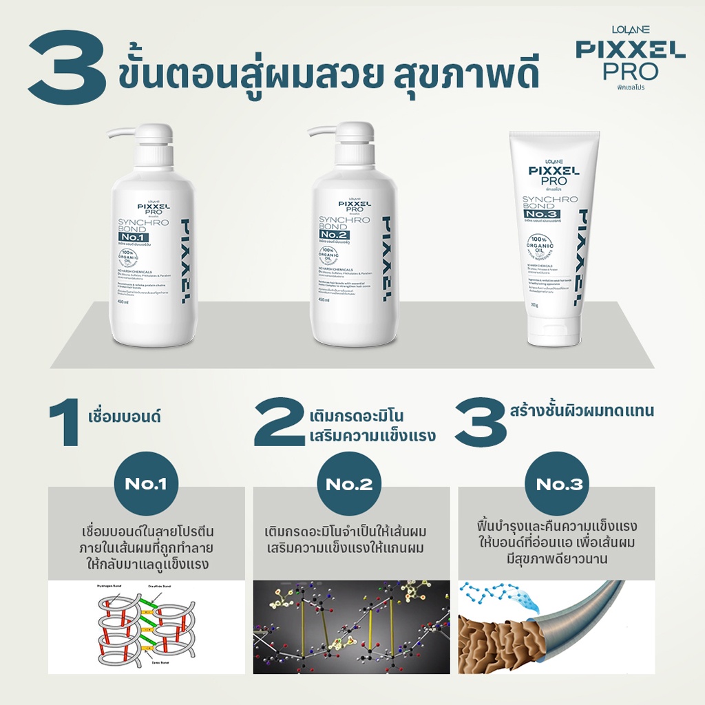 โลแลน พิกเซลโปร ซิงโคร บอนด์ ทริโอ้ เซตบำรุงเส้นผมให้แข็งแรง Lolane Pixxel Pro Synchro Bond Trio Set