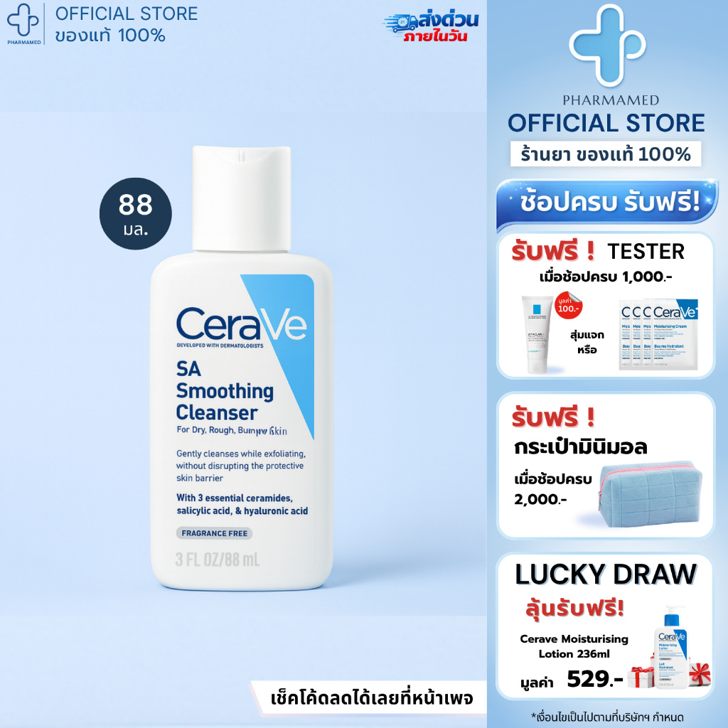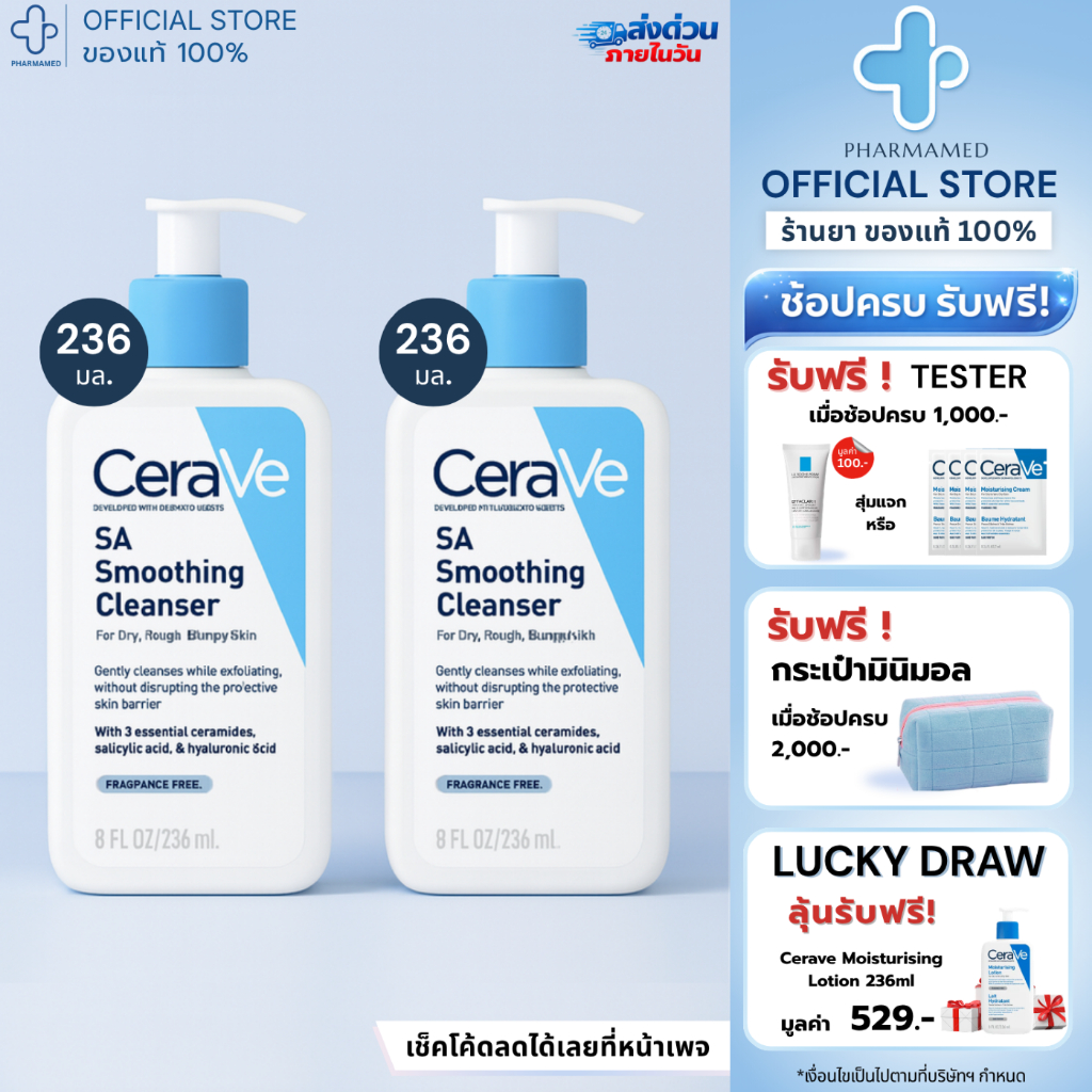 [ส่งด่วน] CERAVE SA Smoothing Cleanser 473ml เซราวี คลีนเซอร์ สำหรับผิวหยาบกร้าน ไม่เรียบเนียน
