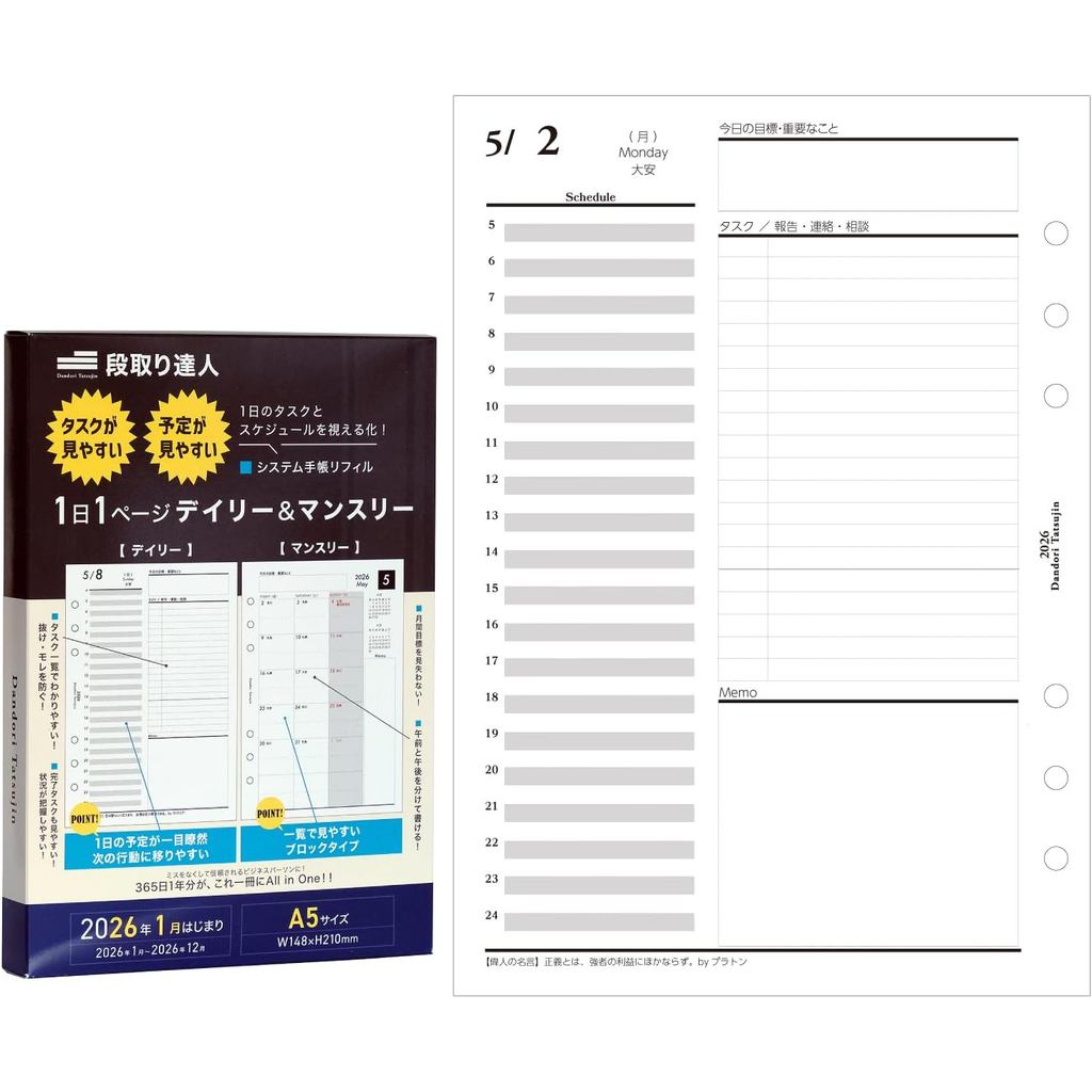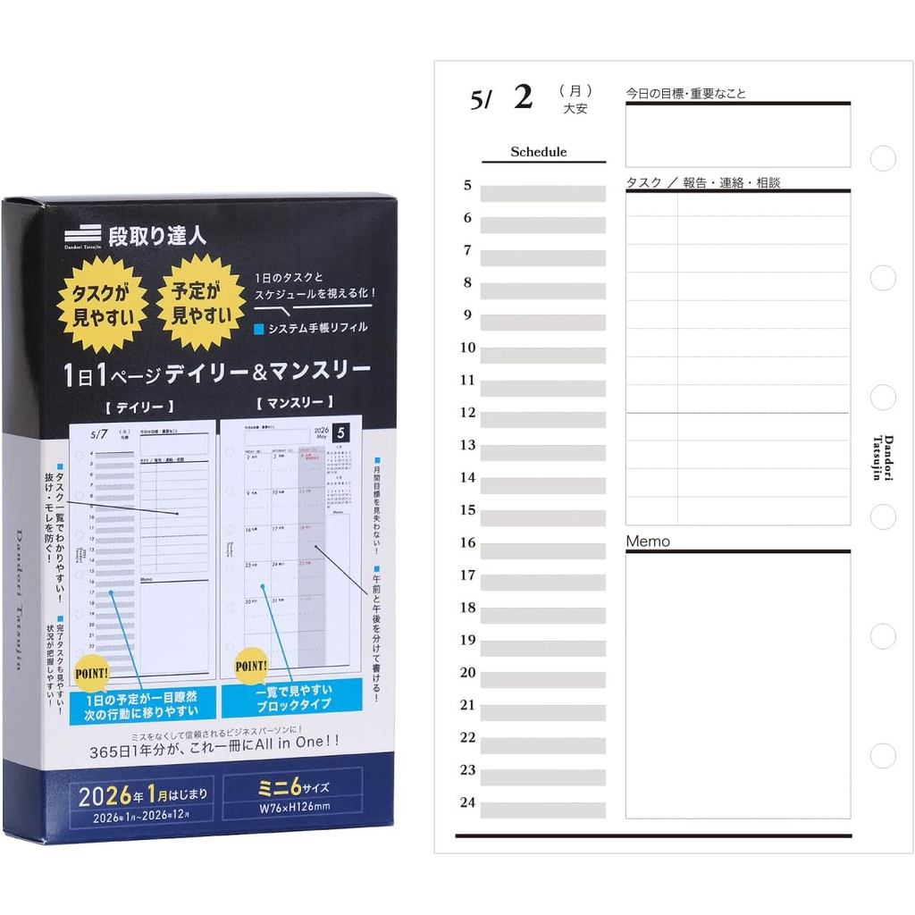 Dandori-Tatsujin รีฟิลระบบสมุดบันทึก รายวัน & รายเดือน สินค้าจากญี่ปุ่น