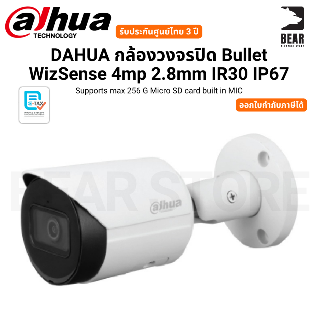 DAHUA กล้องวงจรปิด Bullet WizSense 4mp 2.8mm IR30 IP67 12 VDC/PoE power supplyรับประกันศูนย์ไทย 3 ปี