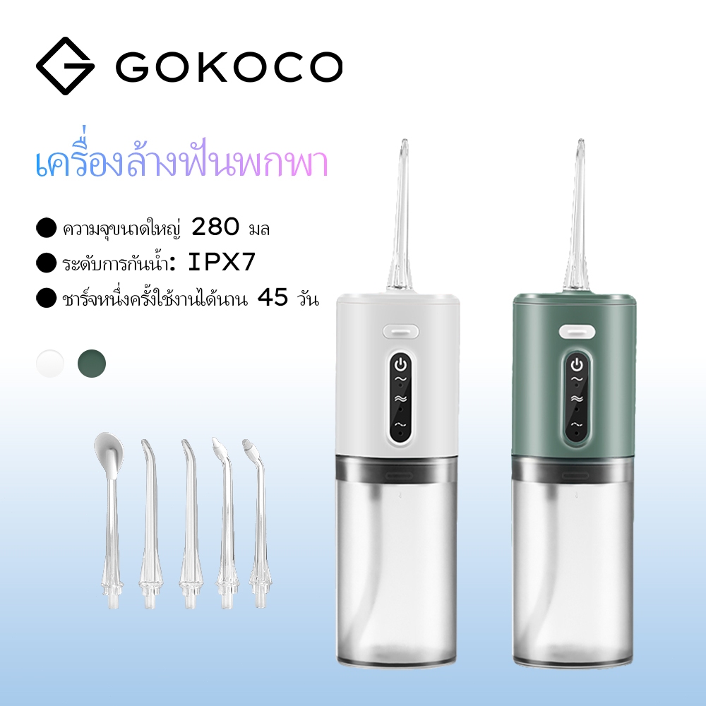GOKOCO water flosser เครื่องล้างฟันพกพา พัลส์ความถี่สูงสามารถเข้าถึง 1,400 ครั้ง / นาที ipx7 ขนาดใหญ่ 280 มล