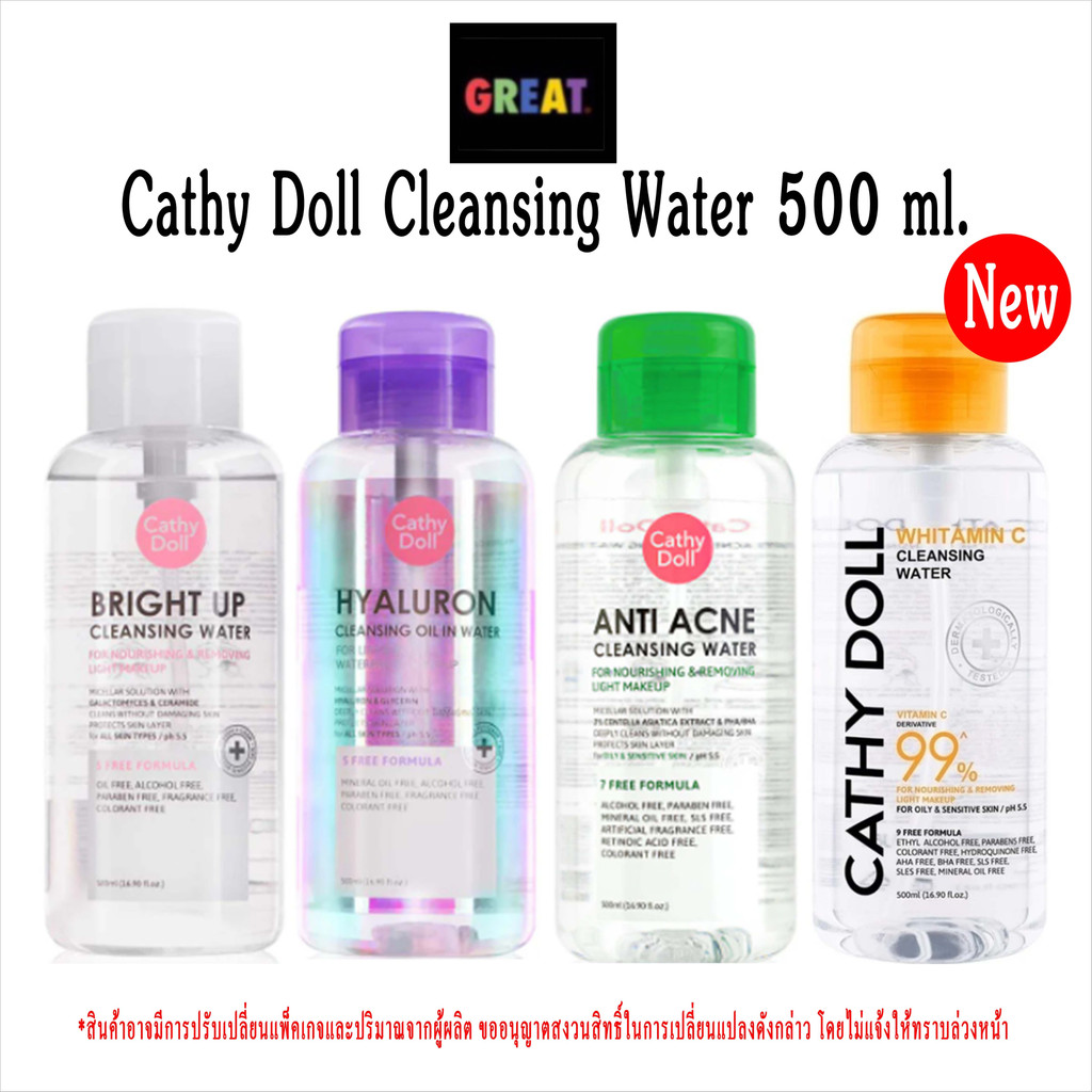 Cathy Doll Anti Acne / Hyaluron / Bright Up Cleansing Water เคที่ดอลล์ คลีนซิ่งวอเตอร์ 120ml/ 500ml. ล้างเครื่องสำอางง