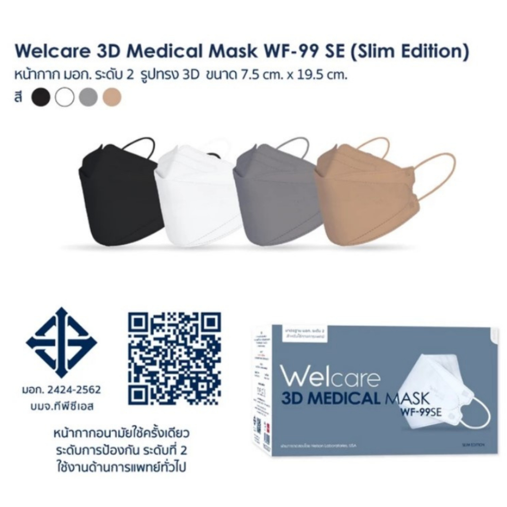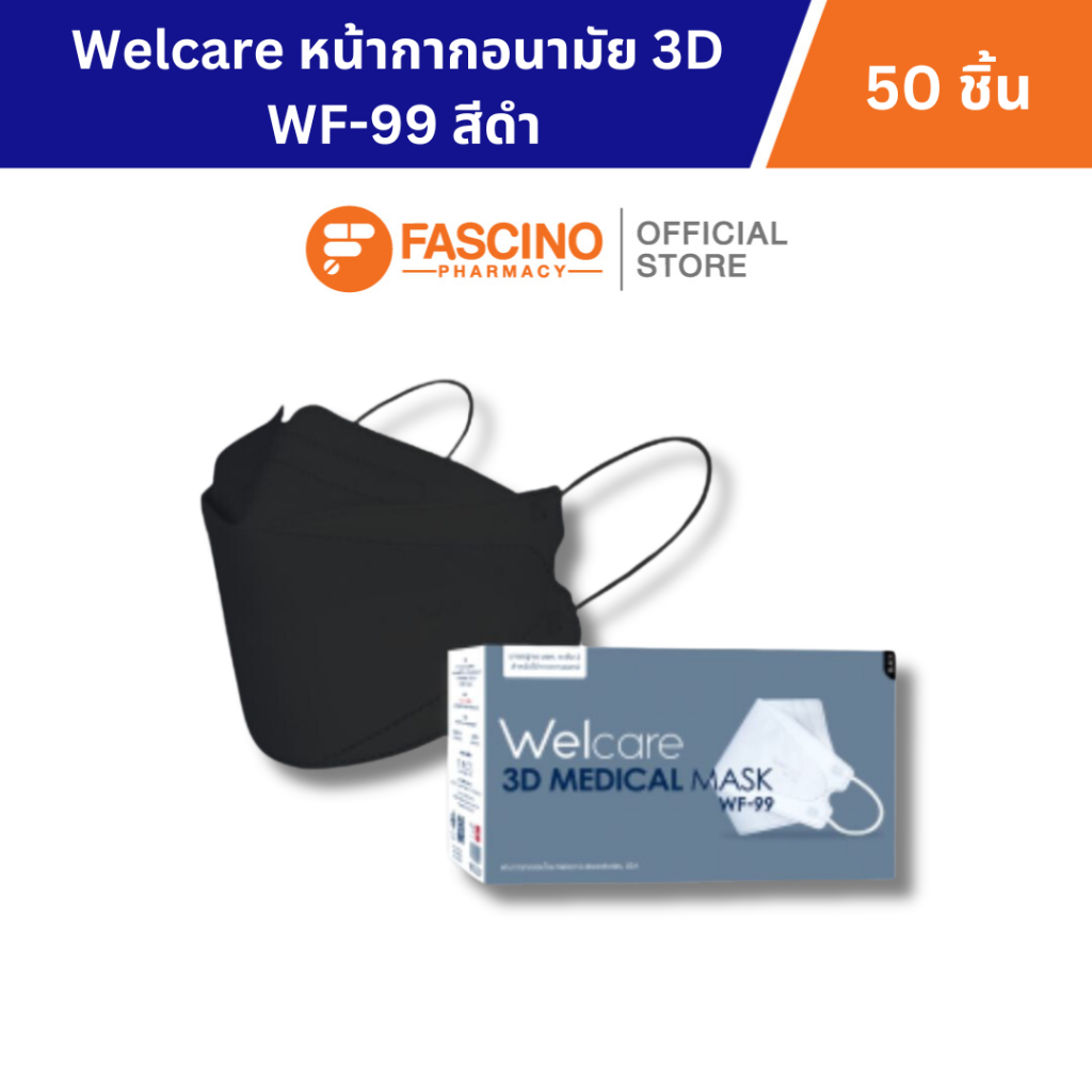 WELCARE หน้ากากอนามัย 3D WF-99 สีดำ 50 ชิ้น / กล่อง
