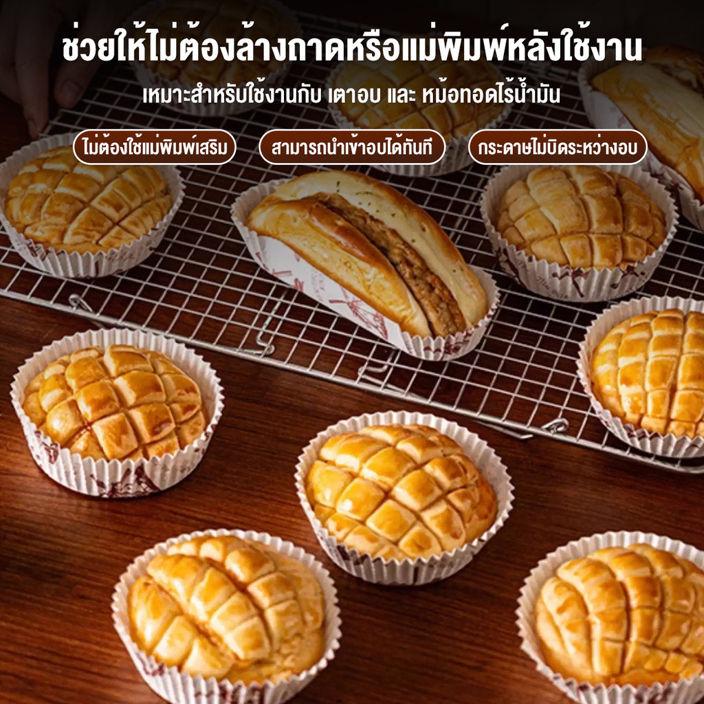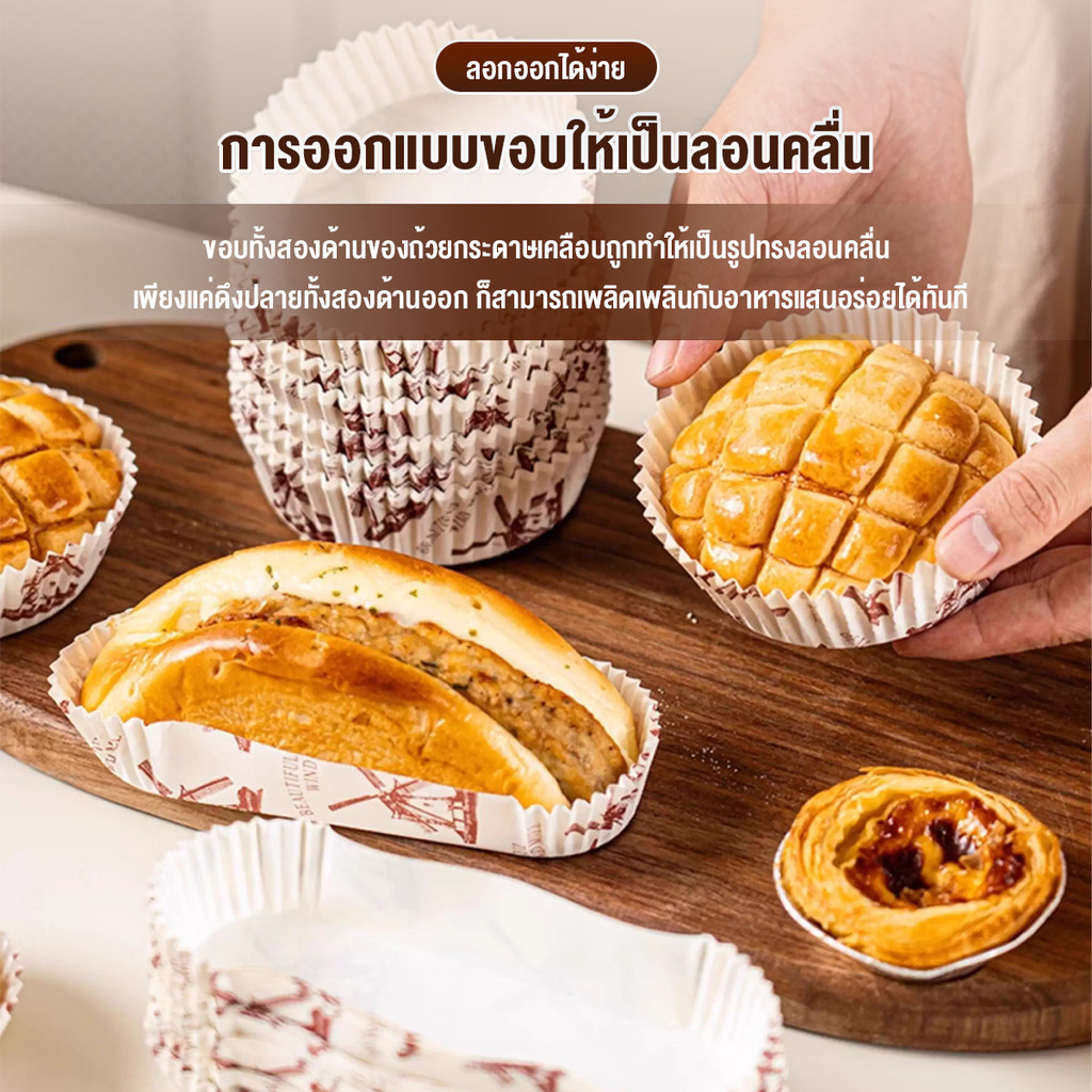 ถาดขนมปัง ถาดกระดาษรองขนมปัง 50ชิ้น/แพ็ค ถาดเค้ก ขนมไม่ติด ทนความร้อน กันน้ํามัน สําหรับทําเค้ก เบเกอรี่