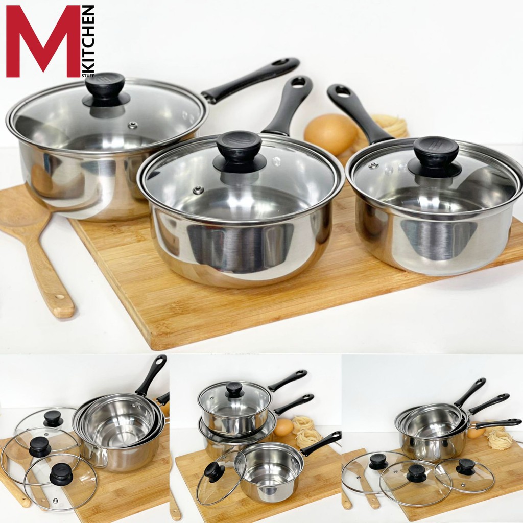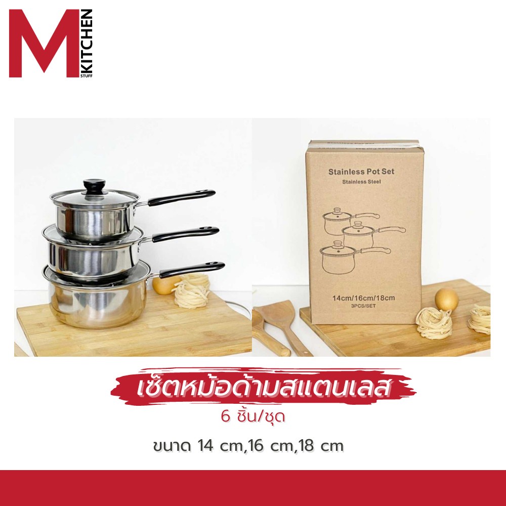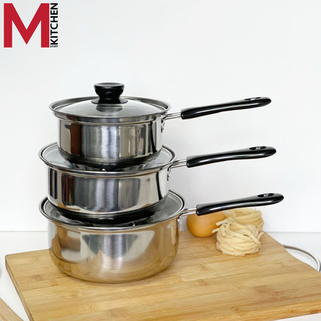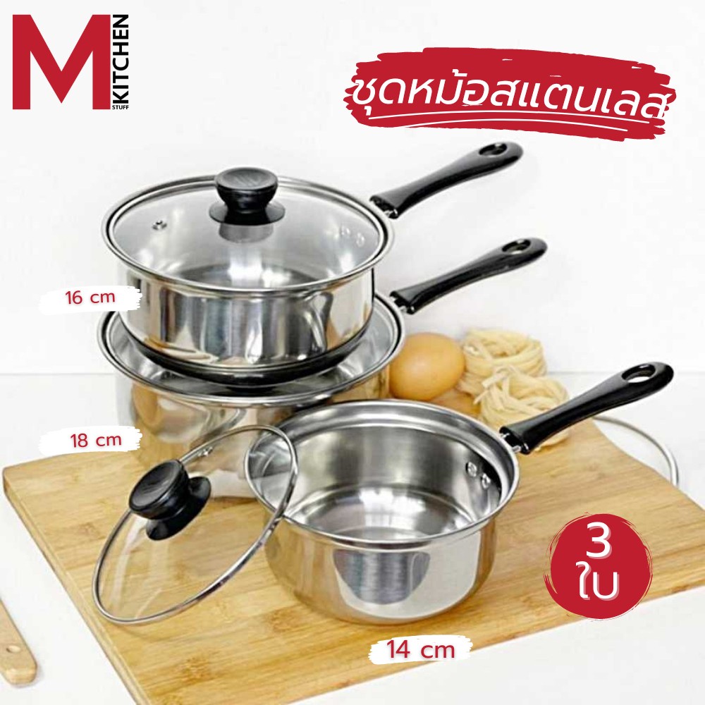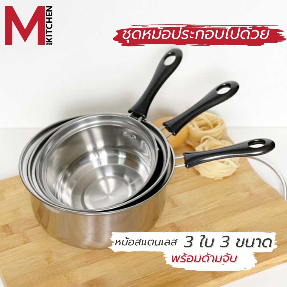 M Kitchen ชุดหม้อ 3 ใบ ขนาด 14 - 16 - 18 ซม. หม้อ หม้อด้าม ชุดหม้อด้าม เครื่องครัว (B1)
