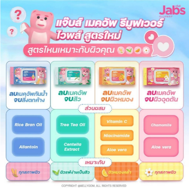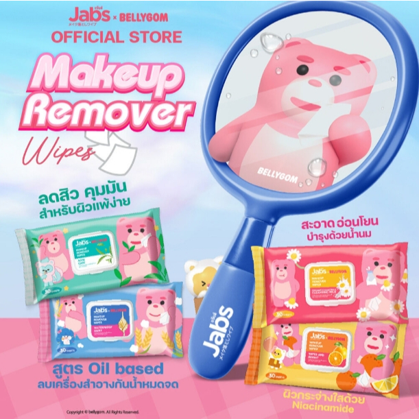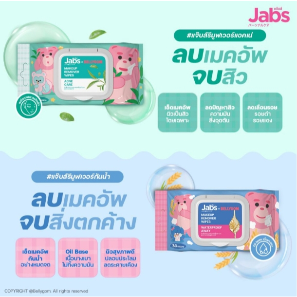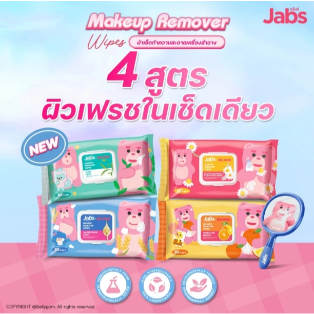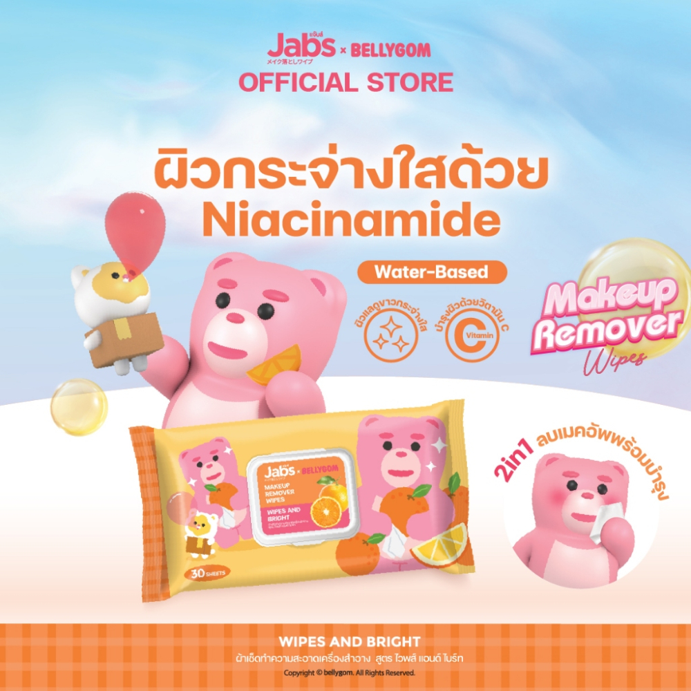 Jabs x BELLYGOM ผ้าเช็ดทำความสะอาดเครื่องสำอาง ขนาด 30 แผ่น 1 ห่อ