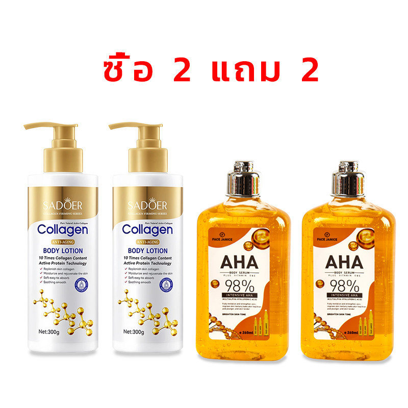 【1 แถม 1 ขาวผิว】AHA 98% เซรั่มทาตัว 260ml + FACE JANICE โลชั่นคอลลาเจนทองคำ 300ml