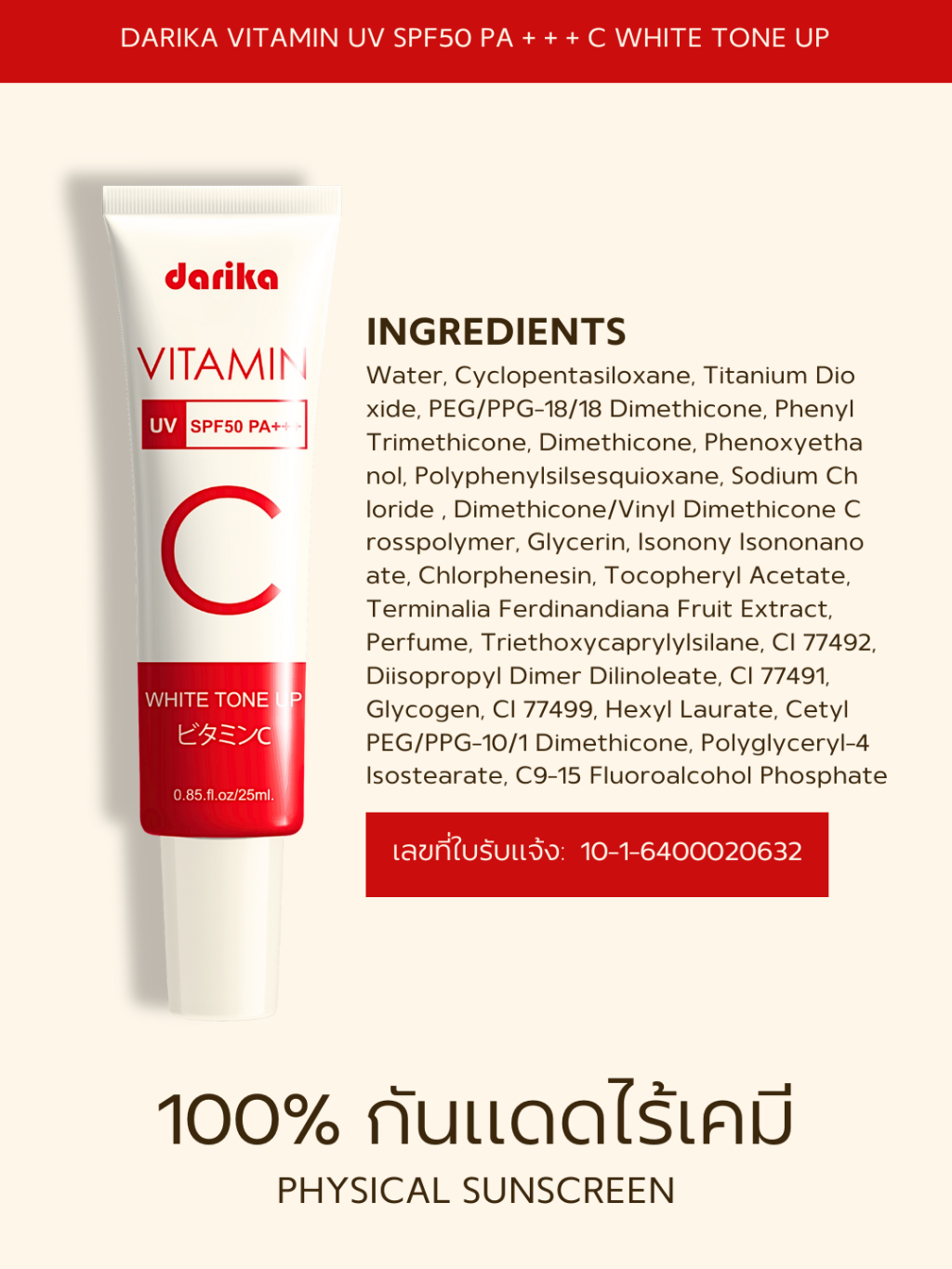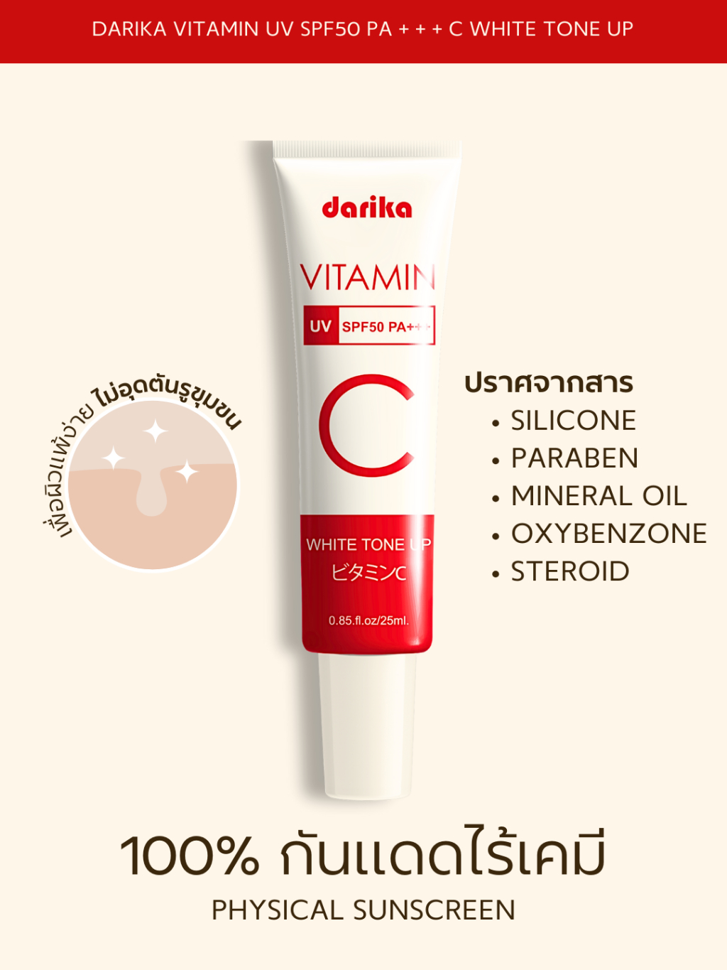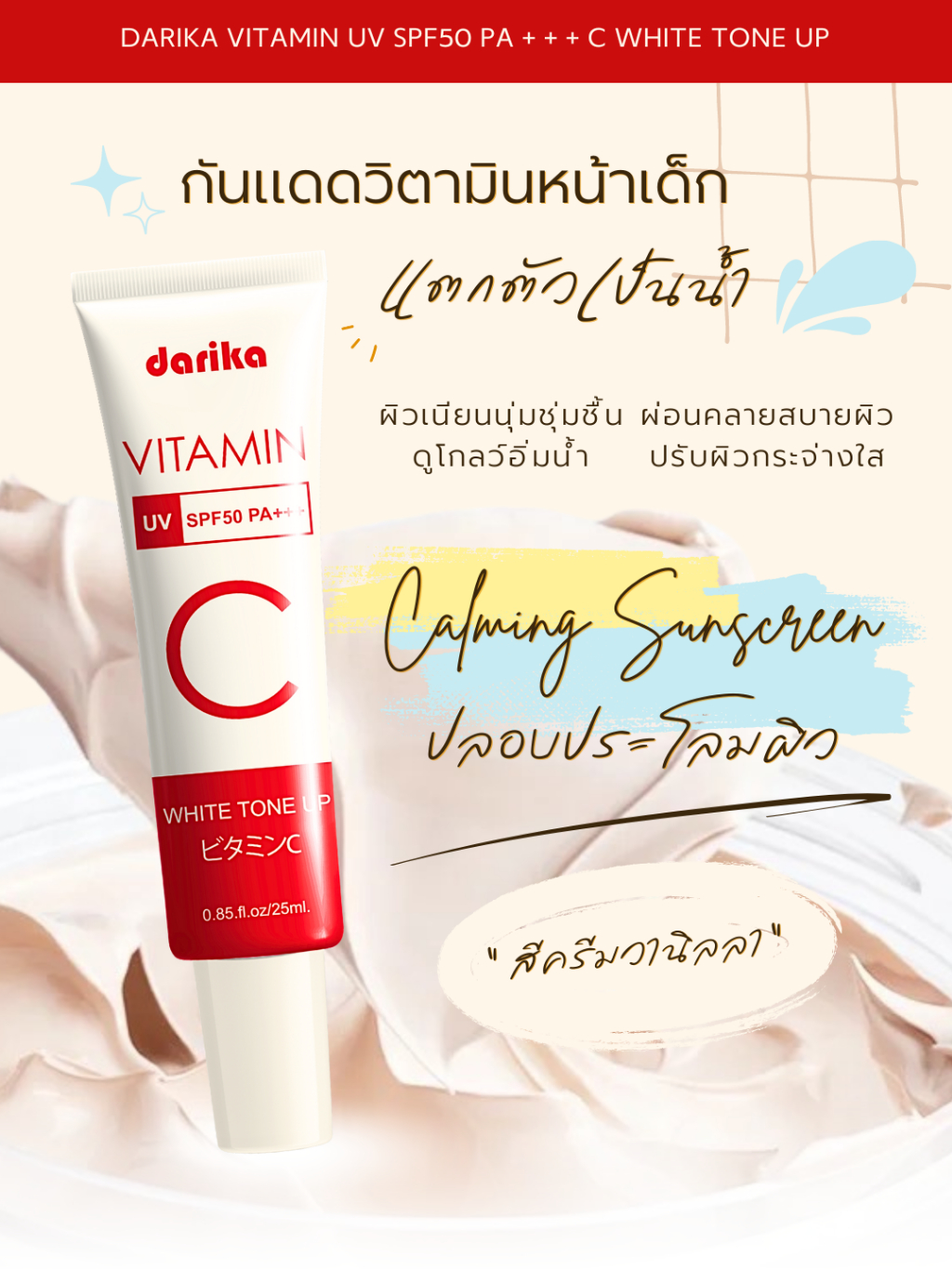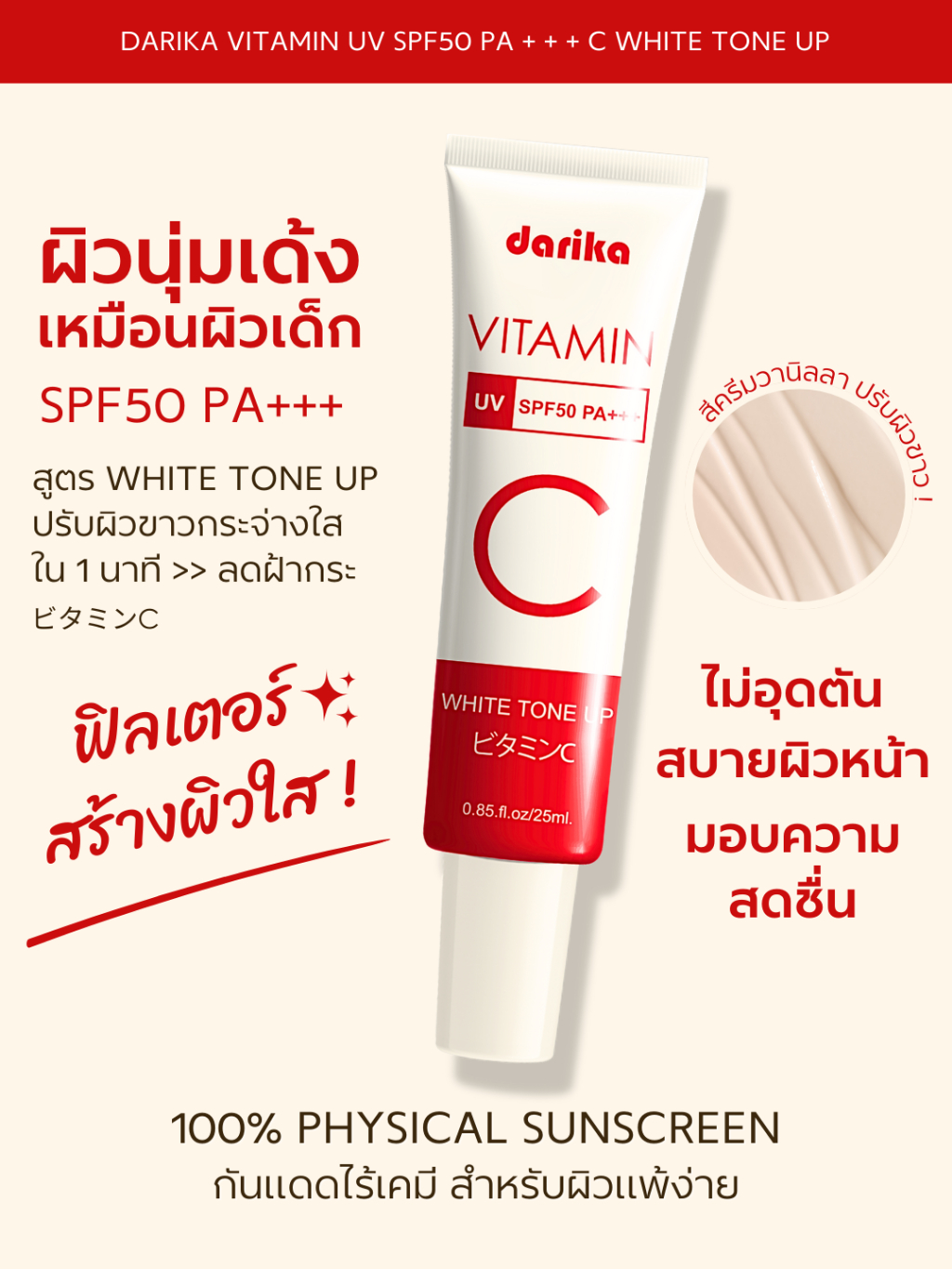 **NEW**🔥No.1 ครีมกันแดดหน้าเด็ก+วิตามินหน้าใส ! ลดริ้วรอย ฝ้า กระ ☀️ DARIKA VITAMIN UV WHITE TONE UP