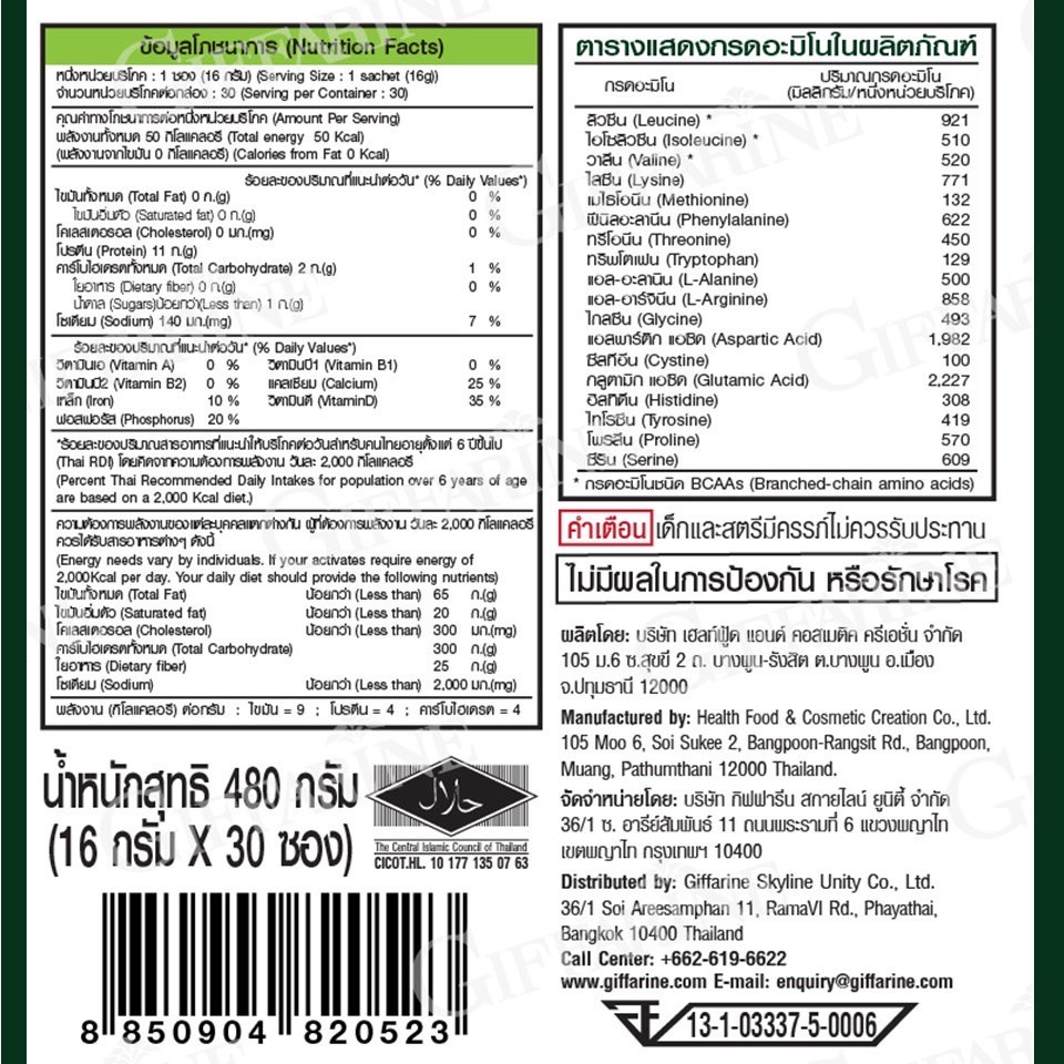 โปรตีนพืช โปรตีนกิฟฟารีน โปรตีน กิฟฟารีน วีแกน มัลติ แพลนท์ Vegan Multi Plant Protein Giffarine