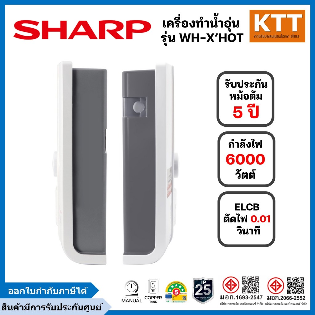 Sharp เครื่องทำน้ำอุ่น ชาร์ป รุ่น WH-X HOT 6 ขนาด 6,000 วัตต์ สีขาว