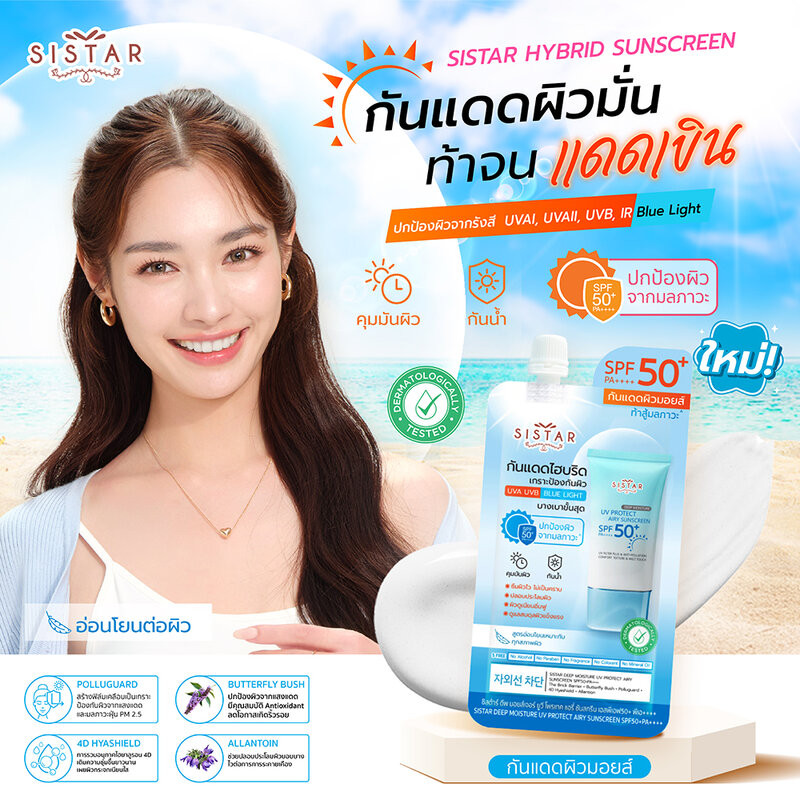 Sistar UV Protect Airy Sunscreen SPF50+ PA++++ ซิสต้าร์ ครีมกันแดดสูตร Hybrid 10g (Deep Moisture/Daily Bright)