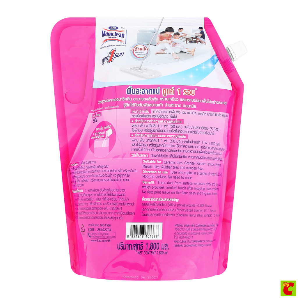 มาจิคลีน ผลิตภัณฑ์ทำความสะอาดพื้น กลิ่นลิลลี่ บูเก้ 1800 มล.