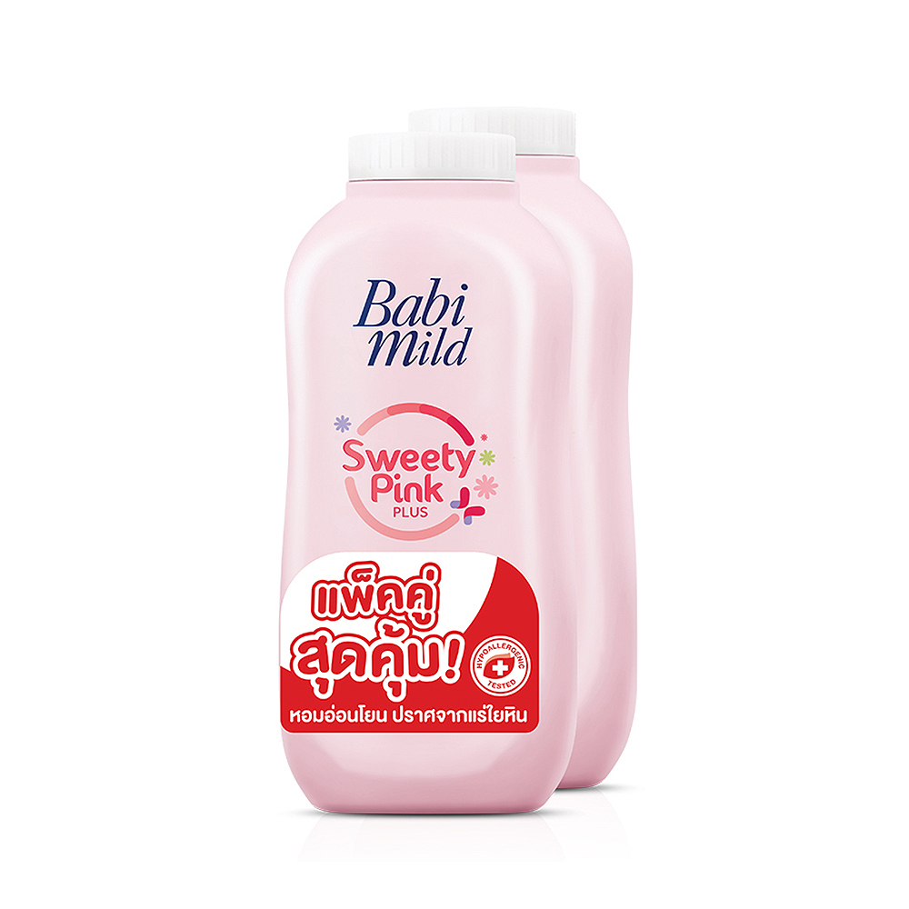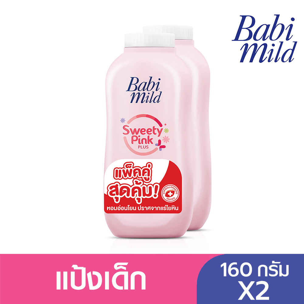 เบบี้มายด์ สวีทตี้พิงค์ แป้งฝุ่นโรยตัว 160 กรัม (แพ็คคู่) BABI MILD POWDER SWEETY PINK 160 G. (TWIN PACK)