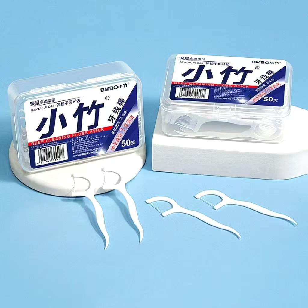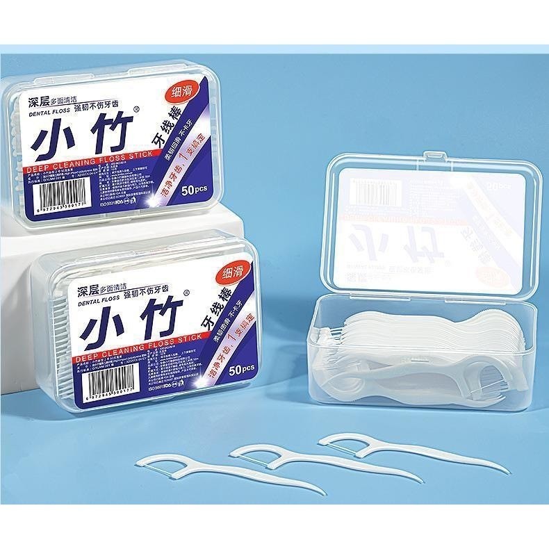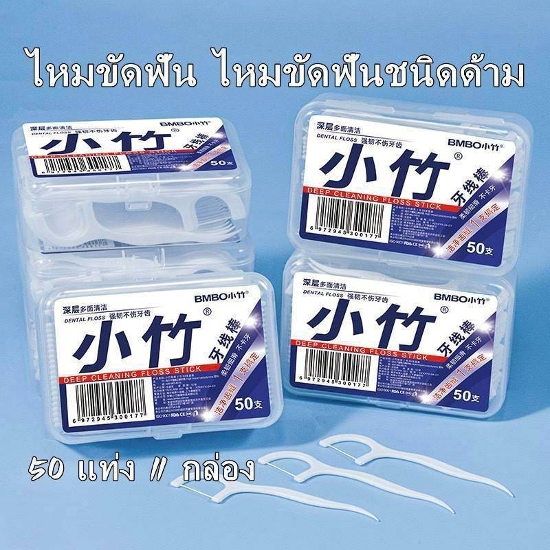 ทันตแพทย์ใช้มัน ไหมขัดฟันและเขี่ยเศษอาหารตามซอกฟัน ชนิดด้ามพลาสติก 50ชิ้น/กล่อง (อุปกรณ์ทำความสะอาดช่องปาก)
