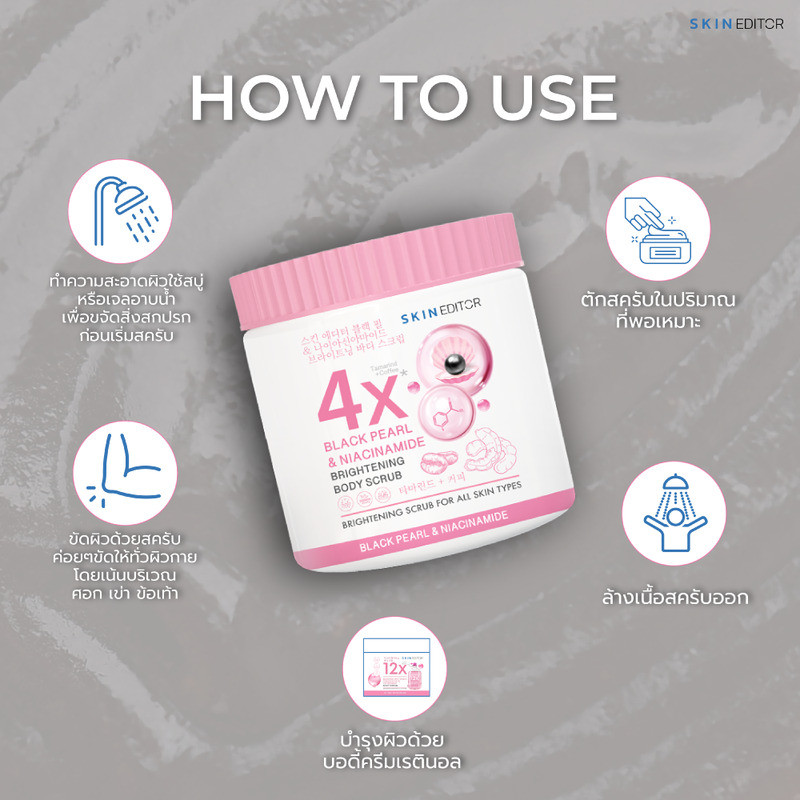 Skin Editor Black Pearl & Niacinamide Brightening Body Scrub 500g สกิน เอดิเตอร์ สครับสำหรับขัดผิวกาย.