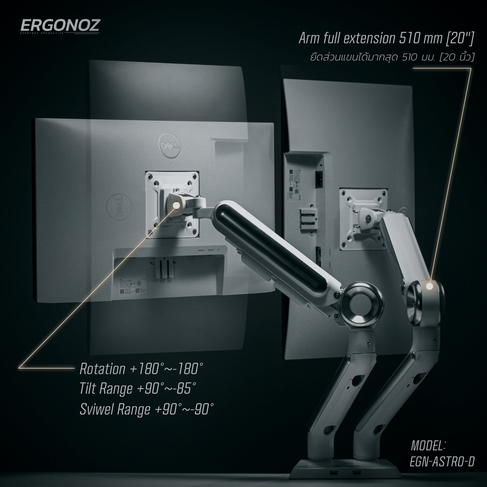 ✅ERGONOZ แขนจับจอ ขาตั้งจอคอมพิวเตอร์ Monitor Arm 2 จอ มี USB3.0 (EGN-ASTRO_D_W) สำหรับหน้าจอ 13 - 35 นิ้ว