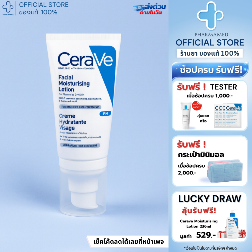 [ส่งด่วน] Cerave PM Facial Moisturising Lotion 52ml เซราวี มอย เจอร์ไรเซอร์ โลชั่น บำรุงผิวหน้า เติมน้ำให้ผิว