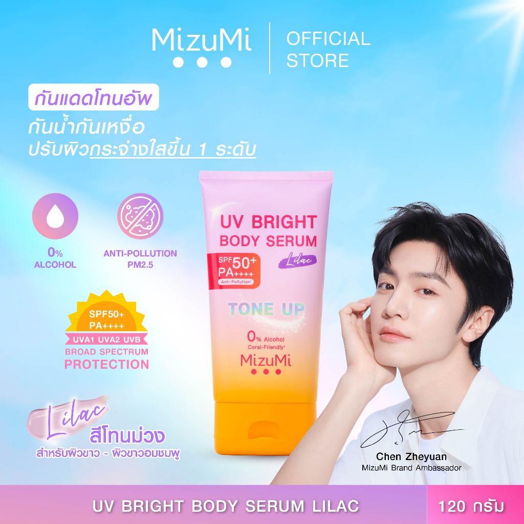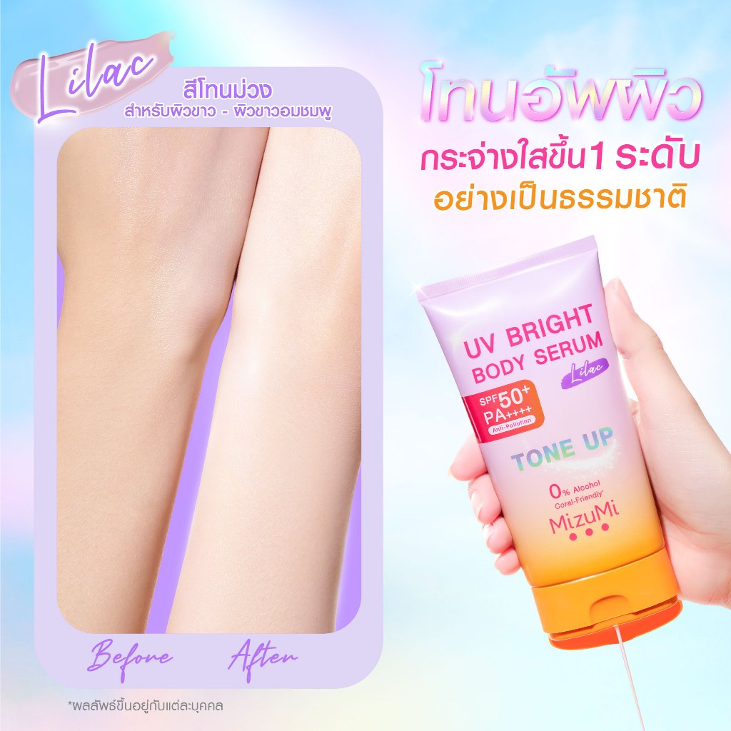 MizuMi UV Bright Body Serum Lilac (120g)เซรั่มกันแดดโทนอัพ ผิวไบรท์ทันที ปรับผิวกระจ่างใสขึ้น 1 ระดับ สำหรับผิวขาว