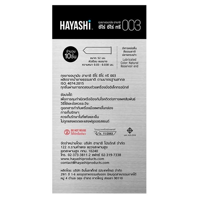 ฮายาชิ ถุงยางอนามัย ซีโร่ ซีโร่ ทรี 10 ชิ้น/Hayashi condom 003 10s