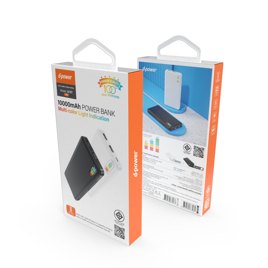 d-power พาวเวอร์แบงค์ 10,000 mAh รุ่น GC57 V2 Power Bank แบตสำรอง ชาร์จไว มี 2สีให้เลือก