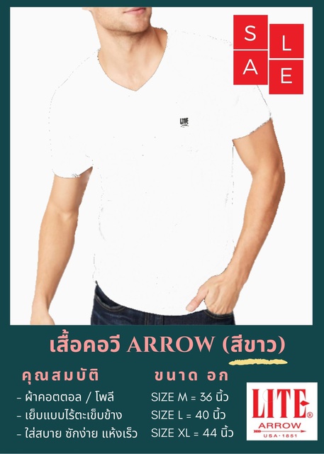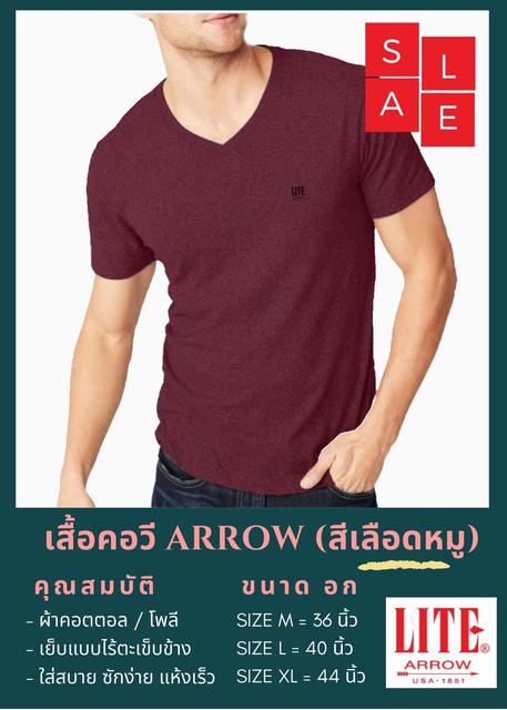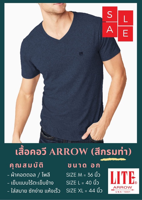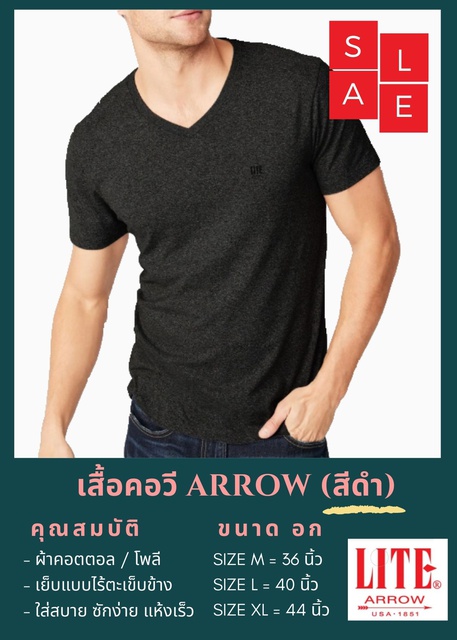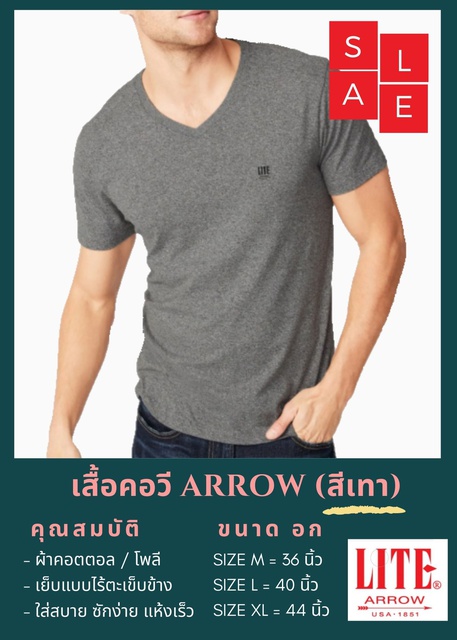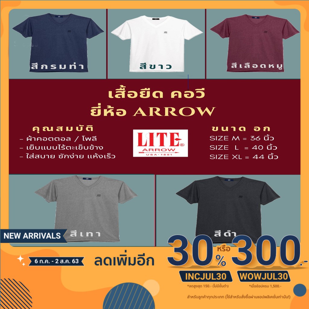 เสื้อยืด คอวี ไร้ตะเข็บยี่ห้อ ARROW