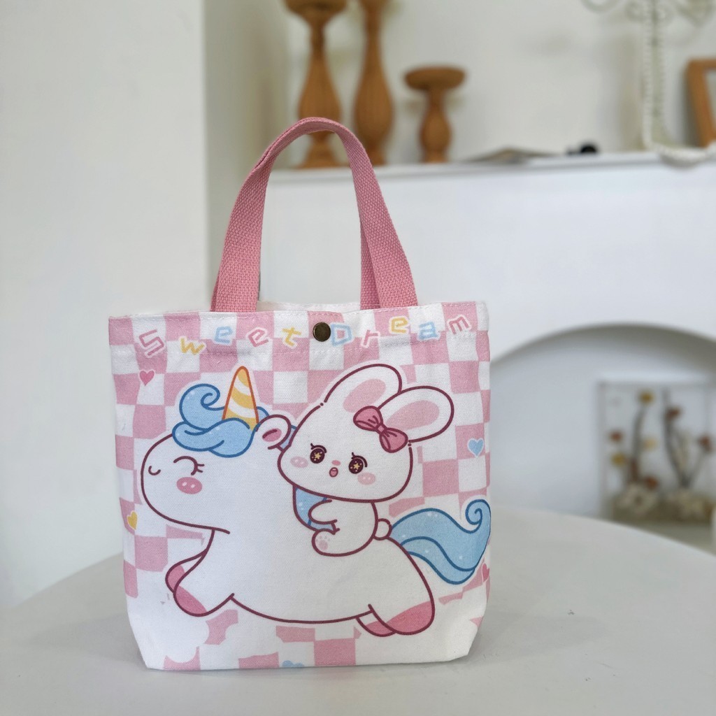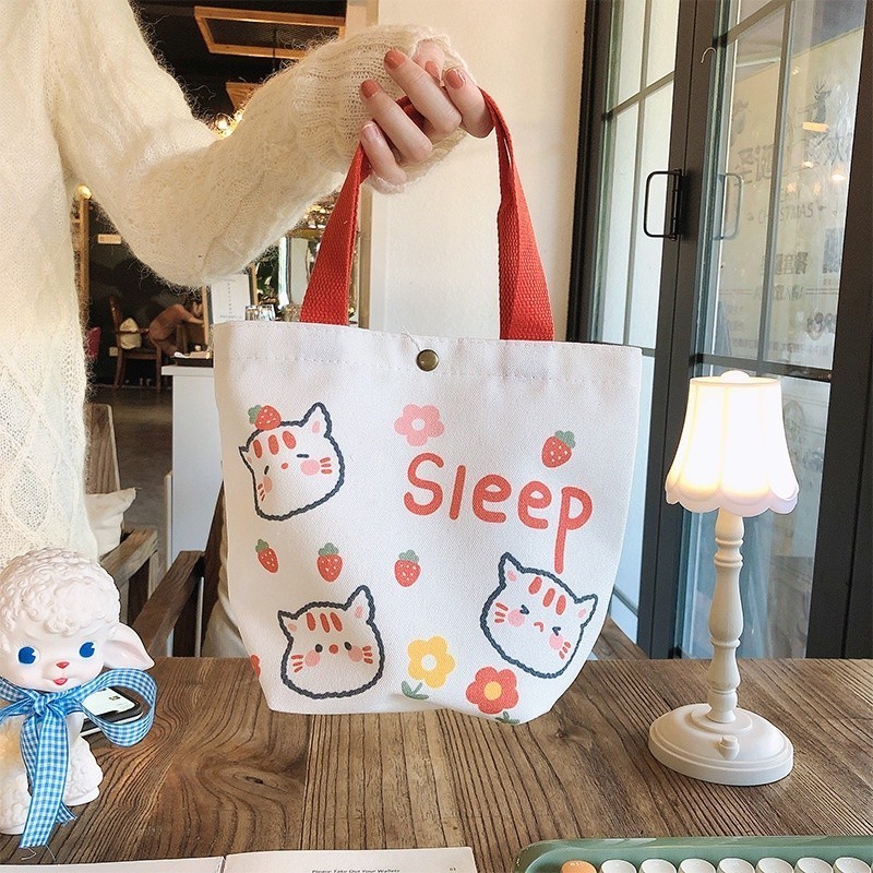YTL กระเป๋าผ้าใบมือถือการ์ตูนน่ารัก อิน สไตล์กล่องอาหารกลางวันกระเป๋าถือเบนโตะ