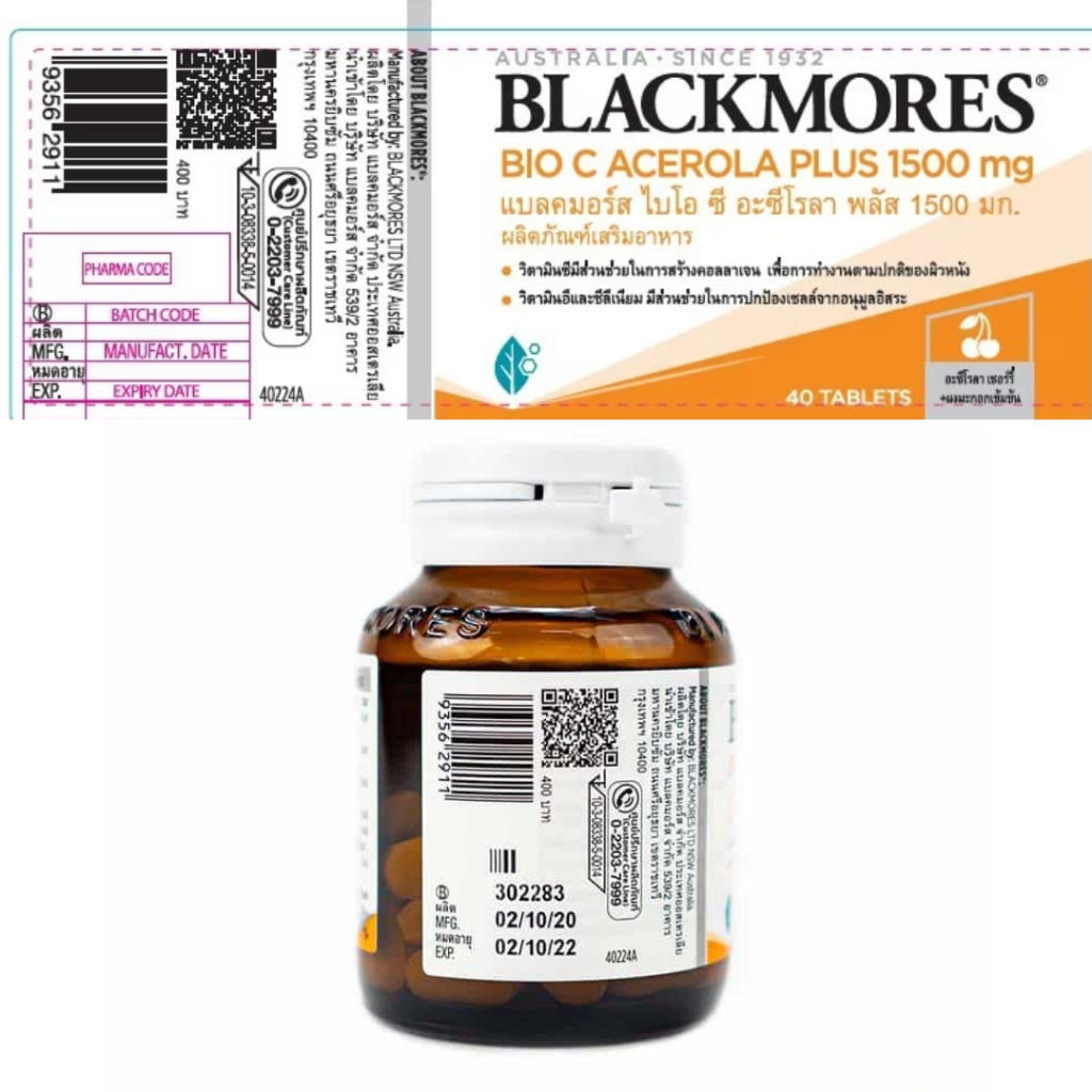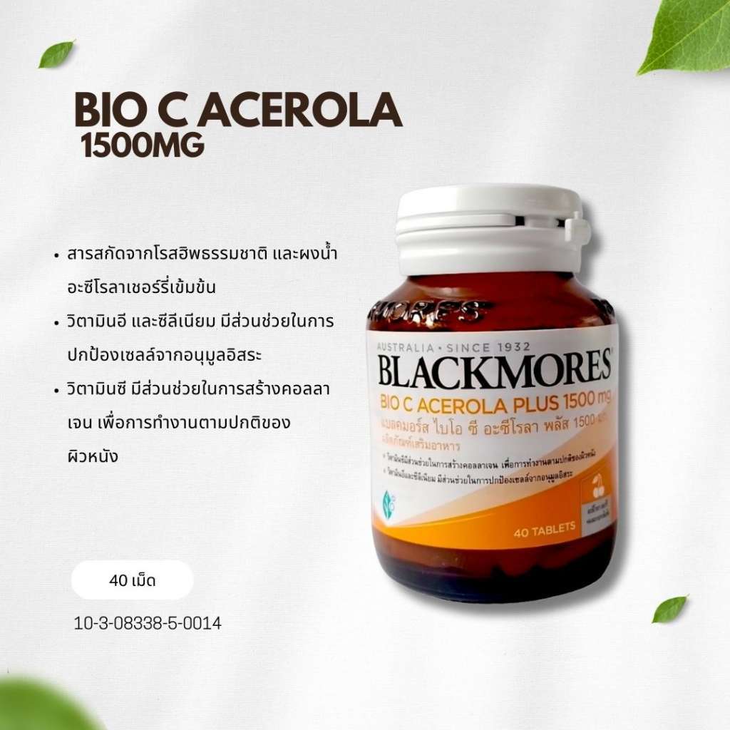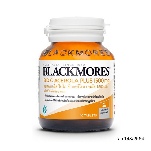 Blackmores Bio C Acerola PLUS 1500 mg (Dietary supplement) แบลคมอร์ส ไบโอ ซี อะซีโรลา พลัส 1500 มก. (40 เม็ด )