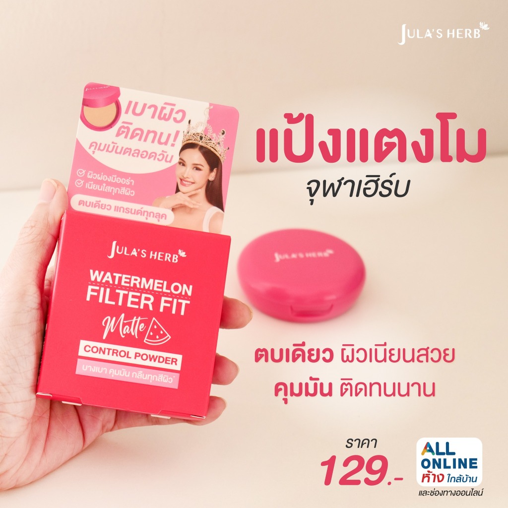 (1ตลับ) แป้งแตงโม จุฬาเฮิร์บ แป้งพัฟคุมมัน เบลอรูขุมขน