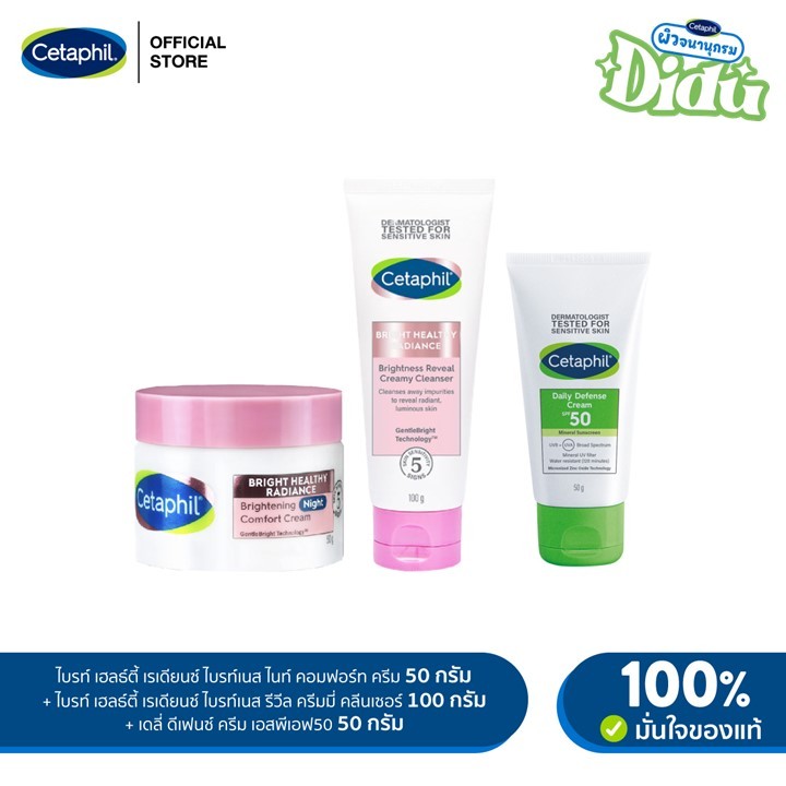 DIDU Set - CETAPHIL BRIGHT CLEANSER, CETAPHIL NIGHT CREAM & CETAPHIL DAILY DEFENSE CREAM SPF50