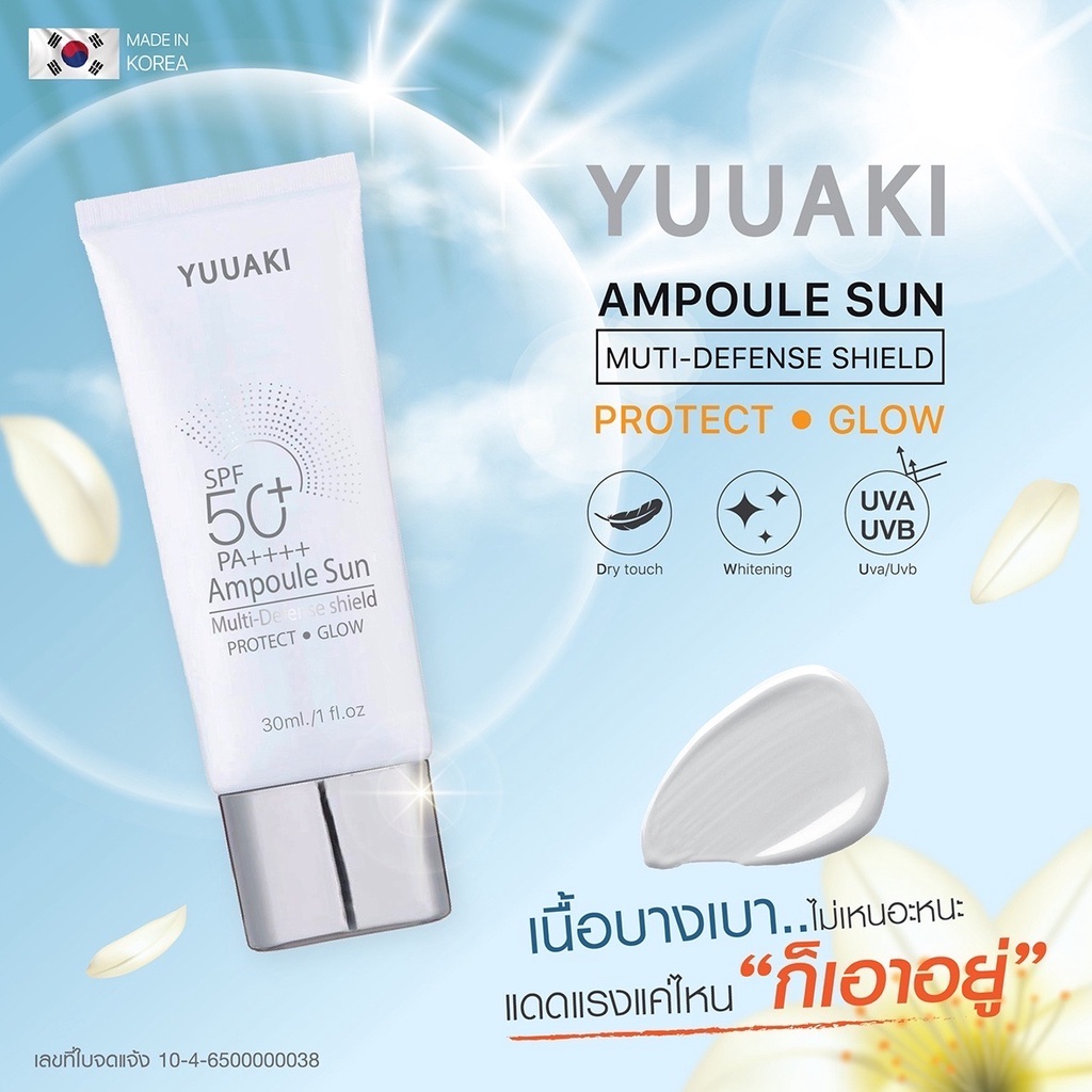 [🌼กันแดด เกาหลี50ml.SPF50+PA++++]YUUAKI Ampoule Sun Multi-Defense shield protect glow