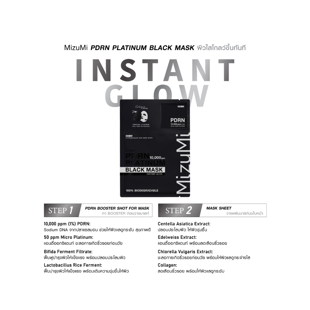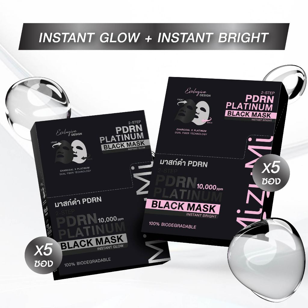 [แพ็คคู่ SET DUO] MizuMi PDRN Platinum Black Mask มาส์กดำ PDRN ยกระดับผิวดูอ่อนเยาว์ ผิวแน่นฟูในแผ่นเดียว