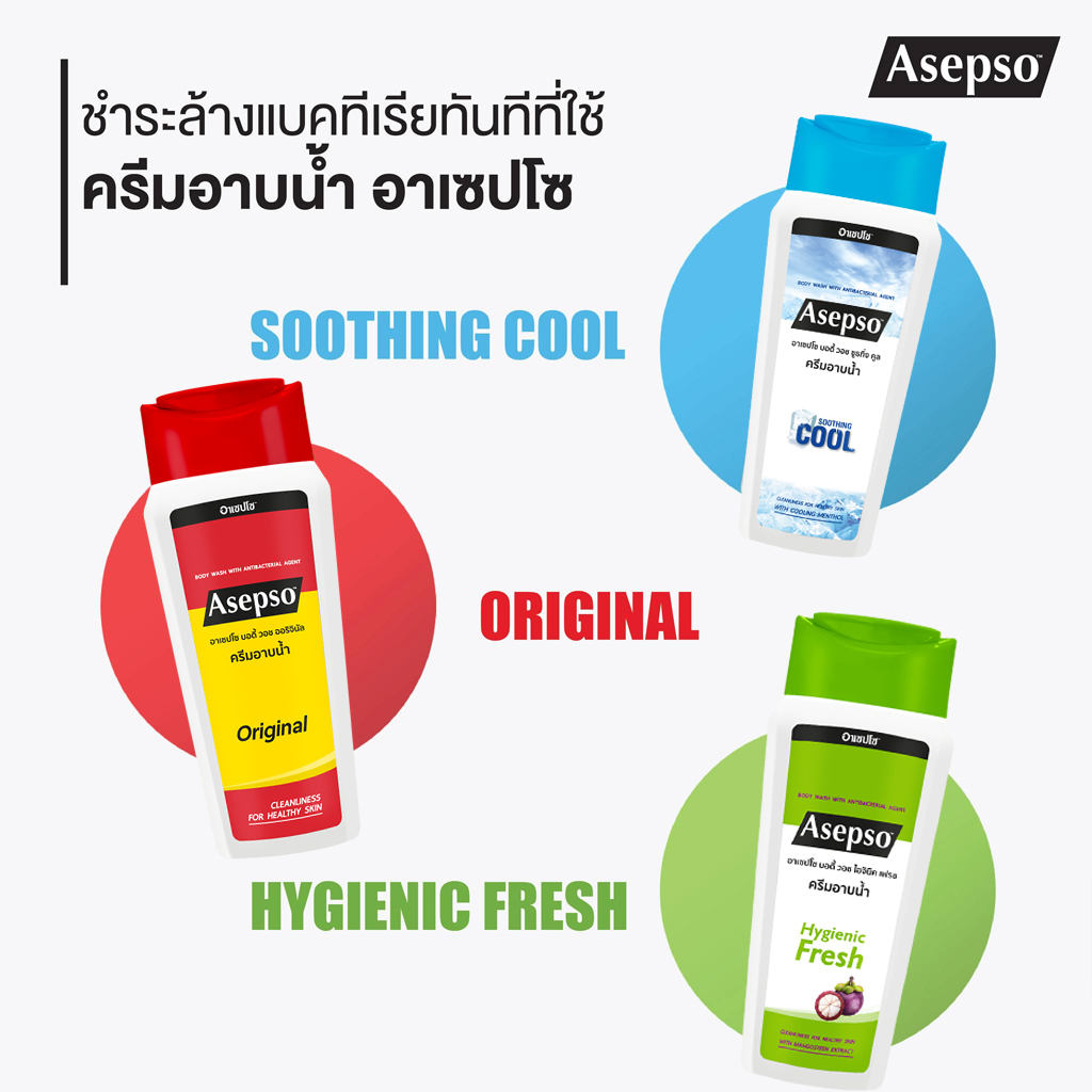 อาเซปโซ บอดี้ วอช 220 มล. Asepso Body Wash Original / Hygienic Fresh / Soothing Cool 220 ml.