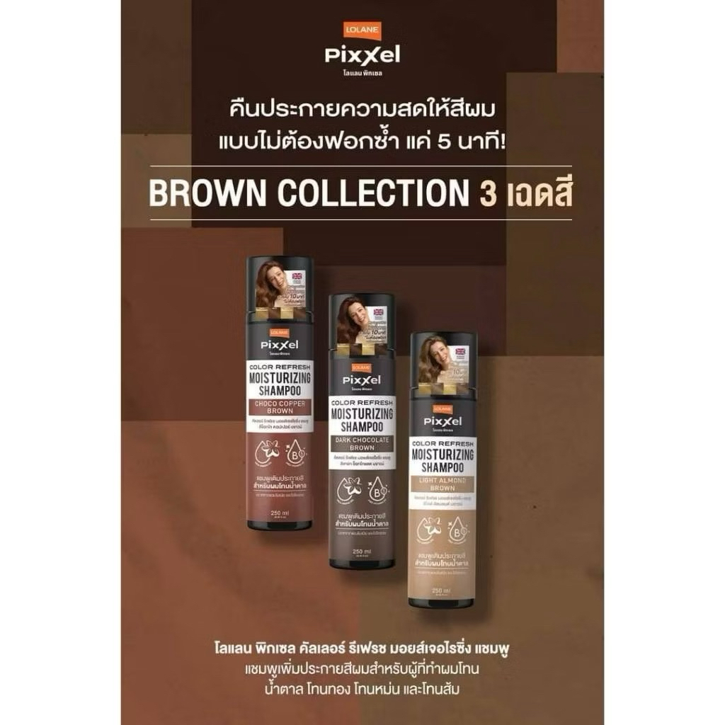 ส่งฟรี/มีไลฟ์ (ขวด)Lolane Pixxel Color Refresh Moisturizing Shampoo โลแลน พิกเซล แชมพูเติมประกายสีผมโทนน้ำตาล 250ml