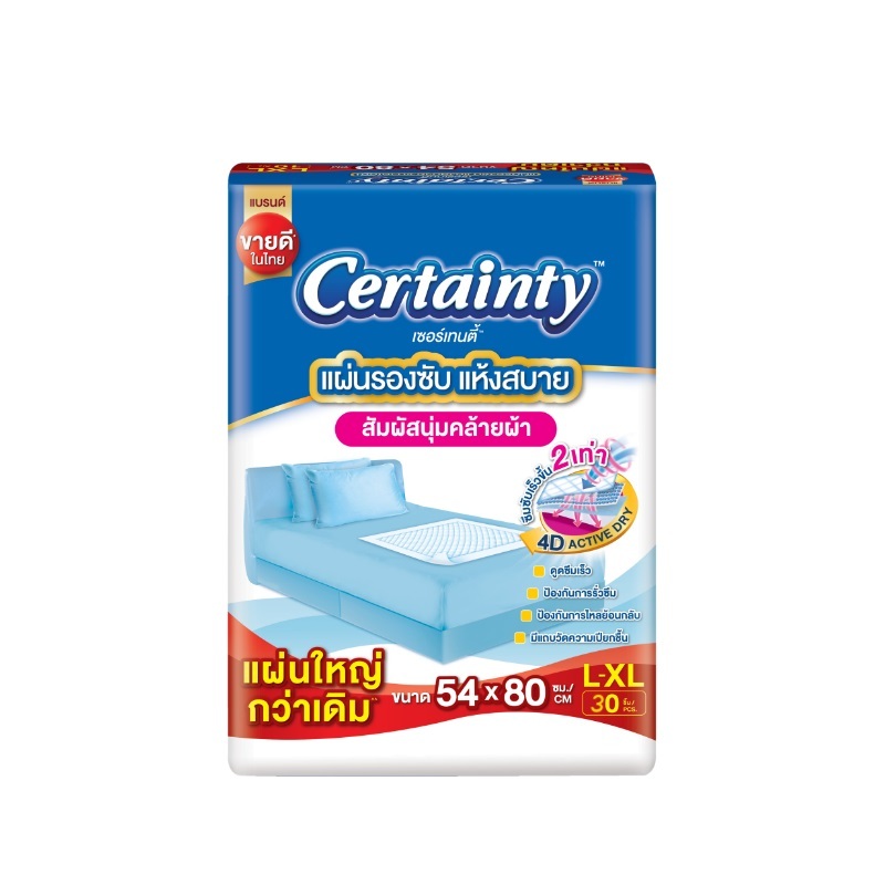 Certainty เซอร์เทนตี้ แผ่นรองซับ แผ่นรอง L-XL ขนาด 54 x 80 ซม. 30 ชิ้น