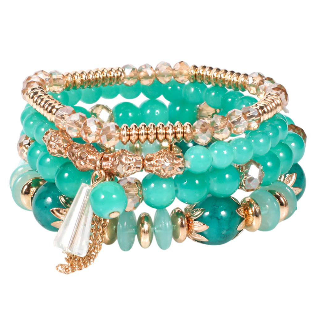 ชุดสร้อยข้อมือลูกปัดโบฮีเมียน 4 ชิ้น/เซ็ต สำหรับผู้หญิง ออกแบบมาเพื่อยืดหยุ่นและวางซ้อนกันได้