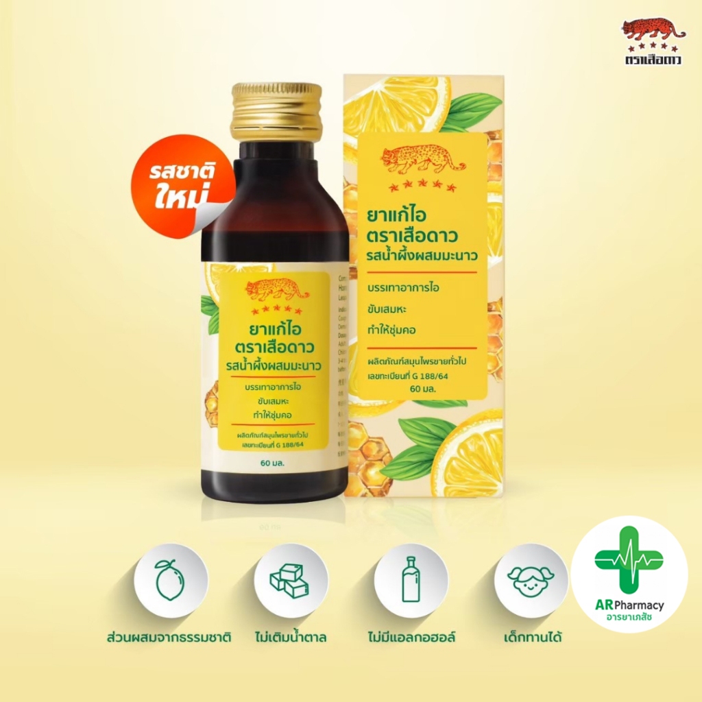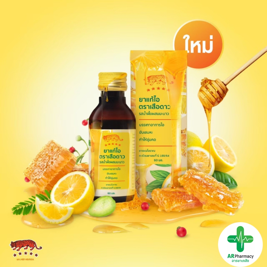 🔥พร้อมส่ง🔥 ยา แก้ไอ ตรา เสือดาว รสน้ำผึ้งผสมมะนาว ขนาด 120 มล. (ยาสามัญประจำบ้าน) ไม่มีแอลกอฮอล์ ชุ่มคอ ขับเสมหะ ไอ