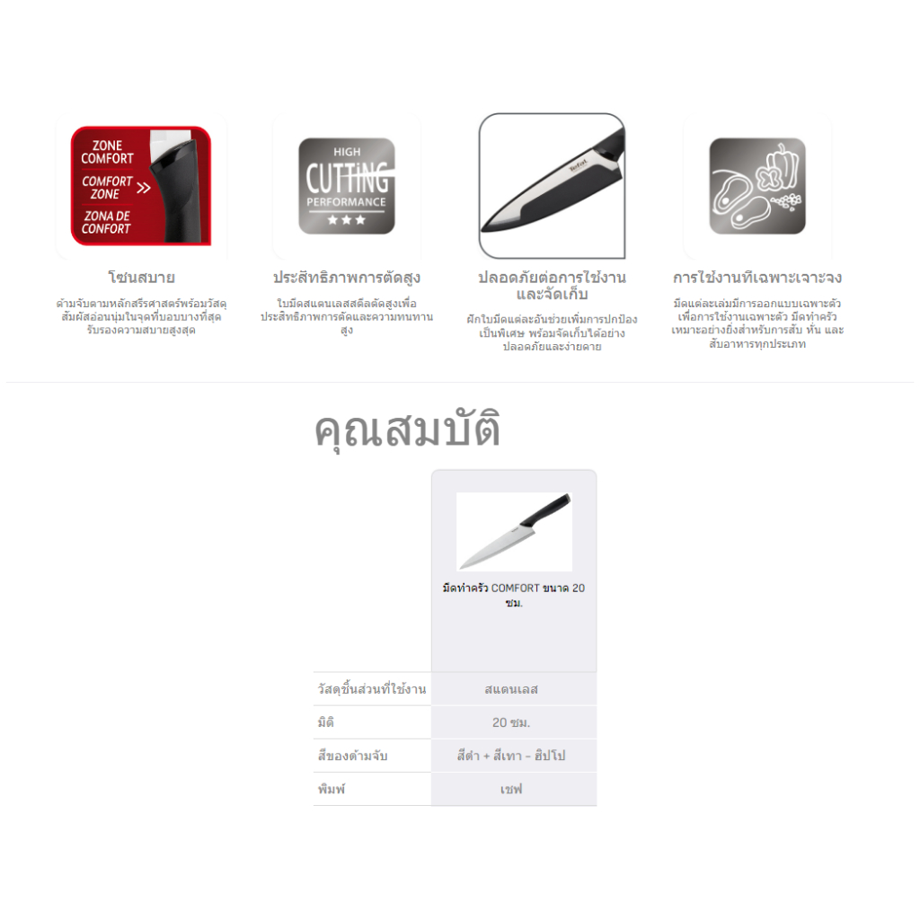 Tefal Comfort Knives Range มีดเชฟ ขนาด 20 ซม. สเตนเลสสตีล รุ่น K2213204