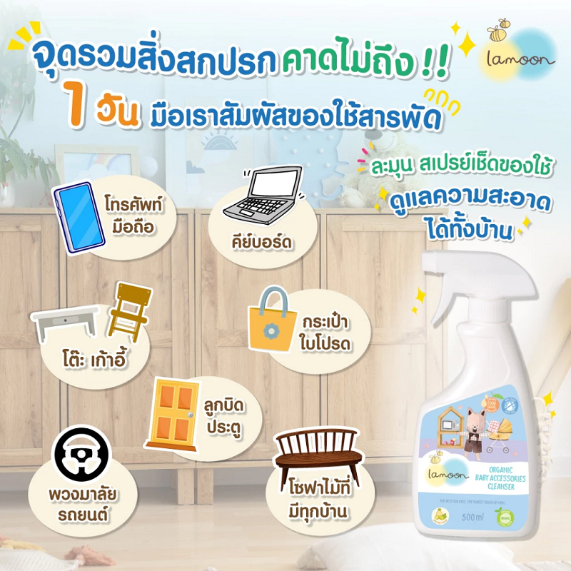 LAMOON ผลิตภัณฑ์ทำความสะอาดของใช้เด็กออร์แกนิคแบบเติม ปริมาณ 450 มล.